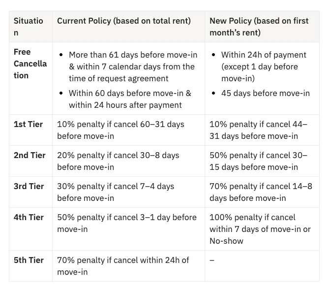 π Cancellation is based on your scheduled move-in time (3 PM KST on the move-in date).