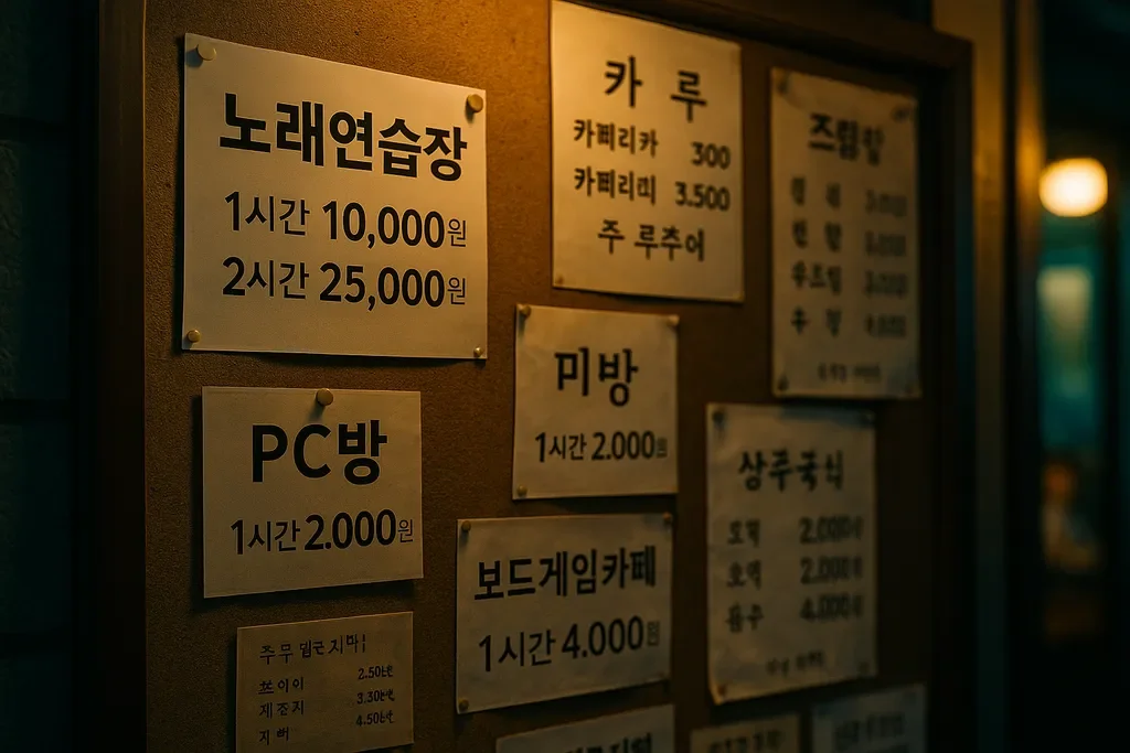 PC Bang (Internet Cafes): ₩1,000–₩2,000 per hour, usually open 24/7