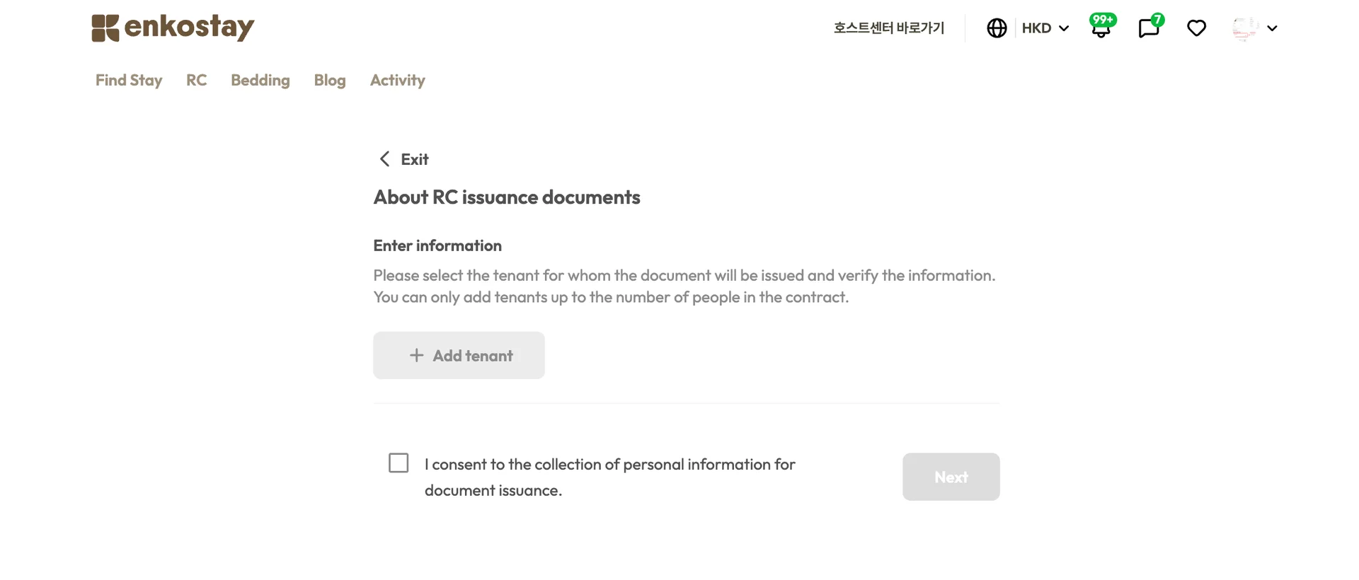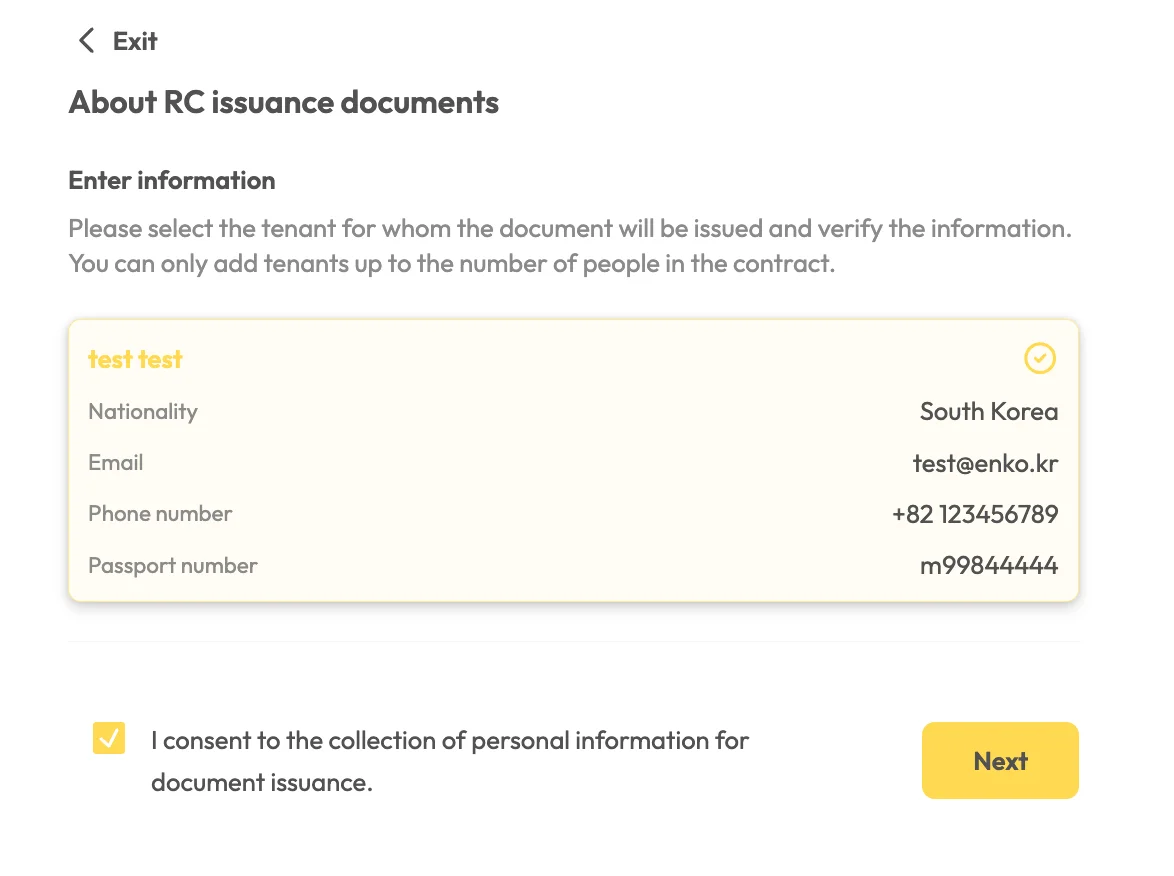 If the number of tenants listed in your contract differs from the actual number of residents who need documents, please email us at stay_support@enko.kr.