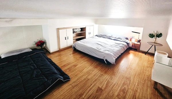 🌟 1 minute walk from Exit 7 of Migeum Station, 15 minutes from Gangnam Station, double-decker accommodation! 🛤️ You can stay 2 to 3 nights. Give me a message! 🏥 10 minutes from Bundang Seoul National University Hospital, adjacent to Jeongja, Pangyo, and Gwanggyo Station 🚌 Shinbundang Line and Bundang Line double station area, 5-minute walk to airport bus stop 📍 Excellent location for both transportation and living infrastructure! 💁♀️ Up to 3 people, be with a kind host who responds with care! 🛏️ Complete with queen + super single bed, sofa bed, sofa, dressing table, reading, air conditioner, refrigerator, etc 📦 Generous storage, removable structure 🛏️ Bedding (optional: W55,000-Towel, Pillow 2, Queen-Sized Blanket, Mat) is all provided after washing and keeps the environment clean. 💁♀️📩 Non-face-to-face occupancy (15:00 in check-in, 11:00 in check-out), and sending a notification message when the contract is confirmed 🤫 Please use it quietly due to the nature of the apartment house! 🚫 No dogs 🚭 No smoking indoors (smoking incurs cleaning fees) 🎬 Free OTT such as Netflix and Disney+ Marts, Daiso, Starbucks, Olive Young, and convenience stores are available on foot around the 🛒 dormitory, making life very convenient. 🚉However, since it is located on a busy street along the road, external noise may occur depending on the time of day, so please refer to it if you are sensitive to noise. 🔧 Stay nearby and help guests with any inconvenience immediately!