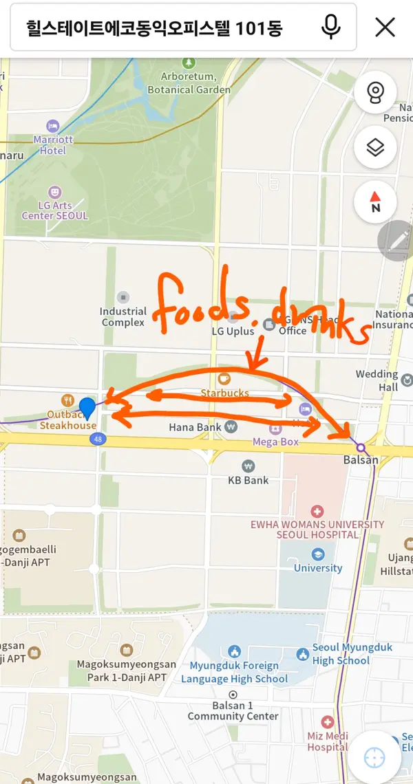 9 minutes on foot to Yangchonhyanggyo station line 9. 8 minutes on foot to Balsan station line 5. it's in between. by airport limousine bus 6018, 2 minutes on foot to the stay. (70 minutes interval though) by airport limousine bus 6003, 10 minutes on foot to the stay. (20 minutes interval, frequent) 40 minutes to Hongdae. 1 hour to Myeongdong there's a large Park with lakes and a greenhouse to amuse and food streets to visit within 10 minutes on foot.