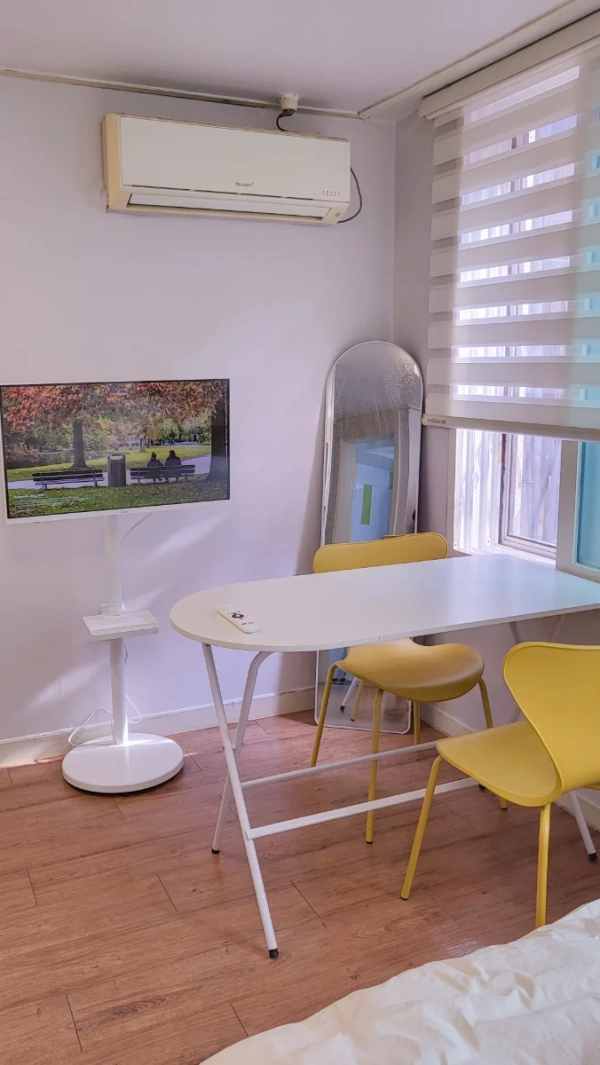 Hongik University and Sinchon Core Location / Yonsei University, Seogang University, and Hongik University are close to each other / Full home appliances options It is the best studio with a 3-minute walk from Exit 5 of Hongik University Station and a light walk to Gyeongui Line Forest Road and Yeonnam-dong. The entire space has been completely remodeled, and the interior is as clean as a new house, and all home appliances and furniture are in the latest condition, making it an optimal space for both long-term and short-term stays. ✔ Best Hot Place Hongdae Core Location Hongik University Station Exit 5 3 minutes Airport Railroad (A'REX), Line 2, and Gyeongui Central Line are all available Yeonnam-dong and Gyeongui Line Forest Road 5 minutes on foot Both Hongdae restaurants/bargains are close on foot ✔ Best accessibility to university districts Hongik University 10 minutes' walk Yonsei University on foot for 10 minutes Sogang University bus 10 minutes → It is perfect for exchange students, researchers, language training, and international residents. ✔ Household convenience appliance full option - a queen-size bed - Google TV - a washing machine / air conditioner / cleaner - Refrigerator / Microwave / Electric Pot - Induction, Pot, Kitchen Basic Set - Superfast Wi-Fi * Welcome to the long stay. Feel free to contact us.