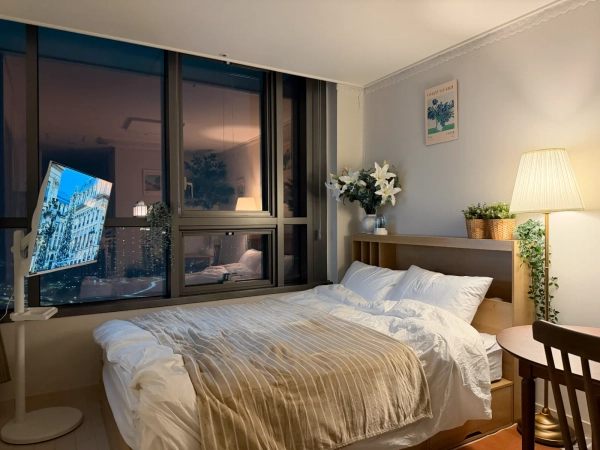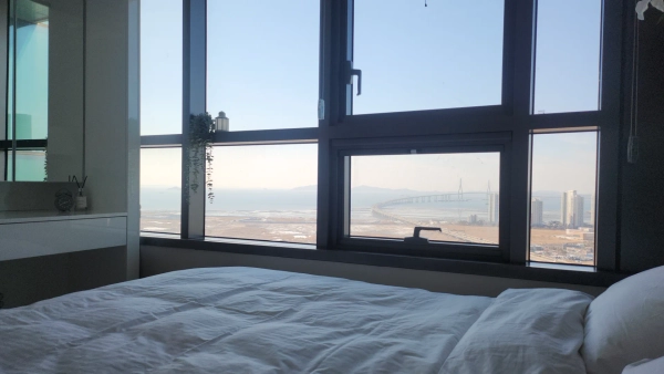 ***A picturesque view of the sea, sunset, and Incheon Bridge.*** Songdo Moonlight Festival Park Station Walks 5 minutes, New Full Option Studio 🎉 Open event [Limited to long-term accommodation customers for more than 28 days] **Those who completed the contract from today to February 14th.** ✔ Free of charge for cleaning the entrance room ✔ Welcome package provided (water bottle, coffee, hotel amenities) ✔ Additional benefits for contracts longer than 2 months ✨ A quick view of the accommodation It is a studio with a view of the sea, the sky, and Incheon Bridge at a glance. Enjoy the blue sea during the day and the beautiful sunset and night view in the evening It's a place where you can enjoy both work and relaxation. 🛏 Accommodation composition Queen size bed, Queen size bedding set (2 adults) Dedicated table & dedicated outlet for work and meals a mobile phone charging cable **All the information you need for a long stay.** Free WiFi 43-inch mobile smart TV (available on all OTT personal accounts) Closet, duvet, dressing table, lower bed drawer available Refrigerator, freezer, induction, microwave, electric pot, hair dryer, curling iron, steam iron 8 kg washer dryer combined, laundry detergent and fiber softener provided Shamp, treatment, body wash, hand wash and dishwashing detergent provided Ceiling air conditioner, floor heating, 24-hour hot water 📍 Location & Transportation Incheon Line 1 Songdo Moonlight Festival Park Station 5 minutes on foot Bus number 42 in front of the hotel Incheon International Airport 25 minutes by car Airport bus stop 6777 5 minutes on foot 🚗 Parking information (free) Free parking available for guests pre-registration After check-in, authenticate your reservation at the lobby desk on the 1st floor In the absence of information staff, free registration after entering the vehicle number in the parking register 🏢 Convenience facilities in the building (1st to 4th floors) 1st floor - Convenience store, restaurant, cafe, pharmacy, snack bar, coin laundry 2nd floor - Cafe, Nonghyup, Beauty Salon, Karaoke, Dental, Restaurant 3rd floor - Brunch restaurant, Korean food buffet, banquet hall, convention, business center 4th floor - Fitness center (paid), golf practice range, and rooftop swimming pool (operating during the summer season) Premium Lounge and Art Culture Room ➡️ Almost a solution to living in a building 🏙 Major facilities around Songdo Moonlight Festival Park Songdo International Business District, G Tower Waterfront Lake, Central Park Technopark, Knowledge Information Complex Incheon National University, Yonsei University, Campus Town Songdo International Library a large shopping mall (Hyundai Outlet, Costco, Shinsegae Mall, Lotte Mall, E-Land Mall, NC Cube, and Kernel Walk) 📦 Usage Information Delivery/delivery to the door of the room a non-smoking building Pet ❌ Cost incurred in case of damage, loss, or severe contamination of goods Separate collection and garbage dumps are available on B1F 🌿 I recommend it to someone like this a long-term and short-term stay in Songdo Working from home/workplace A quiet healing place Those who prefer sea, sunset, and night view Airport access is important