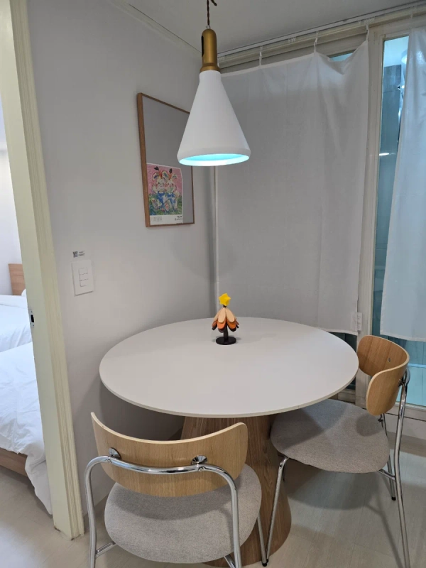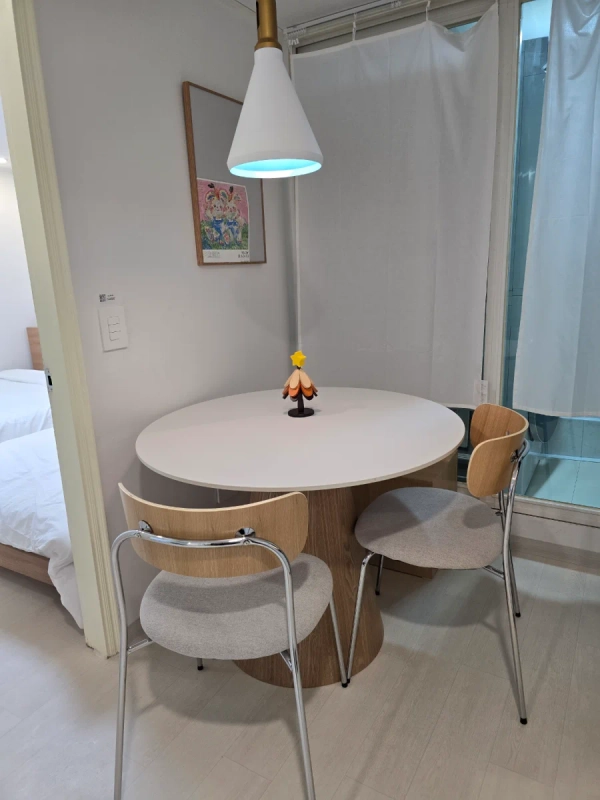 It is a sunny semi-floor two-room accommodation located in a quiet residential area in Yeoksam-dong, Gangnam, 4 minutes on foot from Hanti Station. It is convenient to move to Daechi-dong Academy Street, Seonneung Station, Severance Hospital, and COEX, and living amenities such as Daiso, Olive Young, and Dogok Market are also available on foot. It is a suitable location for both short and long stays. It consists of two bedrooms and one bathroom, with one queen bed, one super single bed, and one sofa bed for two. Up to five people can use it, but the sofa bed can feel rather small for two adults. Both washing machines and dryers are installed, making it convenient for long-term stays, and it has basic cooking facilities such as induction, kitchen utensils, and electric rice cookers. It comes with a desk and free Wi-Fi, making it suitable for work or study accommodation. Free parking is available in front of the building, and if you want to park, please contact us in advance. If you are looking for a quiet and comfortable accommodation in Gangnam, please spend your time at 'Dagam'. -We don't allow pets. -Visitor accommodation is prohibited. -No smoking Dogok Market - 1 minute walk Gangnam Severance Hospital Free Shuttle Bus Stop (Hanti Station Exit 7) - 4 minutes on foot Olive Young (Hanti Station) - 4 minutes walk CU (Daechi Lotte Branch) - 4 minutes walk 7-Eleven (Gangnam Lotte Branch) - 4 minutes walk GS25 (Daechi Hanty Point) - 4 minutes walk Lotte Department Store (Gangnam Branch) - 5 minutes walk Daiso (Hanti Station) - 5 minutes walk Starbucks (Hanti Station) – 7 minutes walk COEX Mall & Hyundai Department Store (Trade Center Branch) - 10 minutes by car Gangnam Station Food Alley – 12 minutes by car -Hanti Station 4 mins walk -12 minutes walk from Seonneung Station -Coex car for 10 minutes -There is a free shuttle bus stop at Gangnam Severance Hospital within a 4-minute walk.
