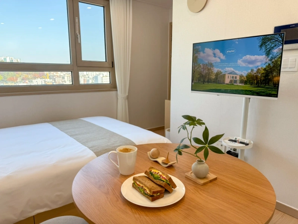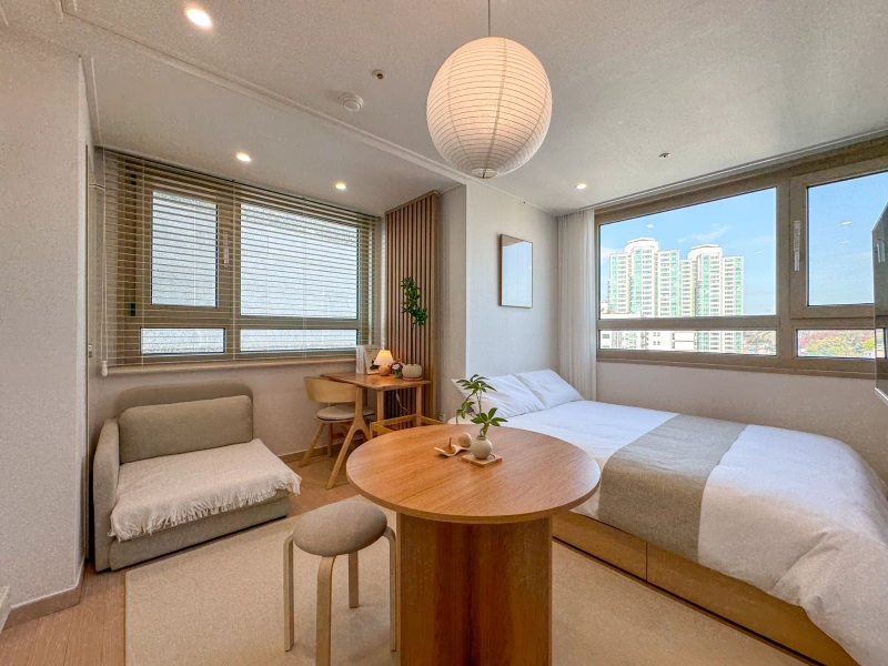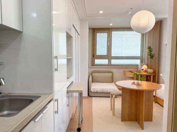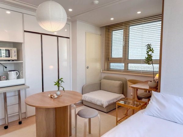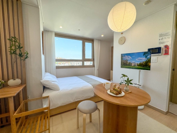 Hello! **RC documents are available.** Welcome to Modern Sky Residence, located in the heart of Seoul. Stylish interior, fantastic sky view, and even the best accessibility! Experience the perfect base camp for your trip to Seoul. Our accommodation is decorated with a modern and cozy design that will help you forget the fatigue of your trip. Sky View: Welcome to the morning while appreciating the beautiful skyline of Seoul that stretches out the window. Modern & Cozy Interior: A cozy space with warm wood-toned furniture and neat white linen (see photo: bedroom, desk, dressing table) Private Bathroom: Provides a dedicated shower booth and bathroom in a clean and modern style. (See photo: Bathroom) Thoughtful Touches: There is dedicated desk space and cozy sofa space for simple tasks or reading. (see photo: workspace) The biggest advantage is the highest traffic accessibility. Dongmyo Station (Dongmyo Station) 1-Minute Walk: Dongmyo Station, where lines 1 and 6 meet, is just a minute's walk away! You can move anywhere in Seoul quickly and conveniently. Subway Lines 1 & 6 Access: Using Line 1, you can easily access major attractions and train stations in Seoul, and using Line 6, you can easily access trendy areas such as Itaewon and Hongdae. One of the biggest attractions of our accommodation is that you can visit major attractions in Seoul on foot. Near the accommodation is the Naksan Park Fortress Wall**, where you can enjoy the historical atmosphere and wonderful night view of Seoul while taking a walk along the beautiful wall road. In particular, the fortress was also famous as a place that appeared in the popular drama K-pop Demon Hunters. Also, you can walk to the 'Dongdaemun History and Culture Park (DDP)' from our accommodation located near Dongmyo Station. This is a vibrant complex with unique futuristic architectural design and endless fashion, design, and cultural events. In addition, Cheonggyecheon Stream, a resting place in the city center, is also close, so it is good to take a leisurely walk or rest along the stream where clear water flows at any time. Finally, a unique Dongmyo Flea Market will be held very close to the accommodation, where you can experience the vibrant local culture of Seoul and enjoy looking at vintage and unique items. Please make some promises for a pleasant space for all of us. No smoking at all! All spaces in the accommodation (including toilets and veranda) are non-smoking areas. If you are caught smoking, you will be charged with immediate exit measures and special cleaning costs (200,000 won). No party! It's good to have a good time, but a late night shout-out or excessive noise causes a lot of damage to your neighbors. It's a place for a quiet rest, so make sure to keep it. Pets not allowed: Unfortunately, pets are not allowed to stay together. NO COOKING FOR SMELLING FOOD: For your next guest, please refrain from cooking food that smells bad, such as fish, grilled meat, and cheonggukjang. Protecting fixtures and furniture: Treat everything in place. In the event of damage or contamination, you may be charged for restoration. Security: Strictly prohibits visits or stays by outsiders other than the reserved number of people. Rooftop Garden: It's a special place to relax, enjoying the crisp air and open views. Fitness Center: Get the perfect fit to stay healthy while traveling for free. Please come out of exit 5 in front of Dongmyo Station. (Start Point) Just walk straight ahead as you come out of the exit. If you walk along this road, you will see the sign of "Bonhometown Restaurant" on the left. If you keep going straight, you'll see the 'CEMT' clothing store on the first road. Turn left on this road and walk. If there are blue stripes in the building, it is Samjeon Solheim 4th officetel.