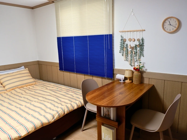 Thank you for visiting our place again today 🏠 Let us introduce our cozy and happy space! If you have any questions, feel free to ask anytime 😊 The host will be happy to respond quickly in English! 🙌✨ ⛱️ Enjoy everything Gwangalli has to offer — all within walking distance. 📺 Watch YouTube, Disney+, or Netflix on the beam projector (please log in with your own account). 🛏️ Relax on a comfortable king-size bed. 🚎 Just a 3-minute walk to the nearby bus terminal, offering easy access to Busan Station, Seomyeon, Centum City, Nampo-dong, and other major areas. ✔ Please take off your shoes at the entrance. ✔ Indoor slippers are provided separately for the room and the bathroom. The room is equipped with a washing machine, microwave, refrigerator, rice cooker, electric kettle, and hair dryer. The space is thoroughly sanitized after every checkout to maintain top condition. 🧺🧹 Smoking and pets are not allowed indoors ❌ Parties, loud noise, and events are also not permitted ❌ ♻️ Please follow the waste separation and recycling rules. 🍳 Cooking with strong smells is not allowed. (No frying, strong spices, or odor-producing food.) 🧹 Please tidy up the room before check-out. 👟 Shoes are not allowed inside the room.
