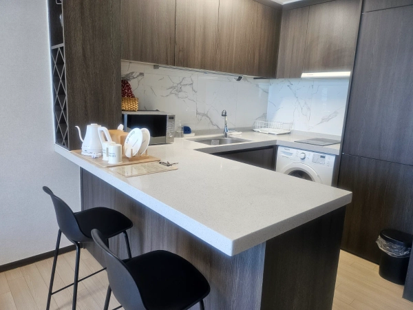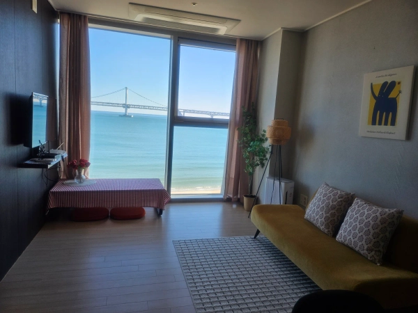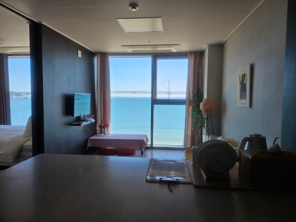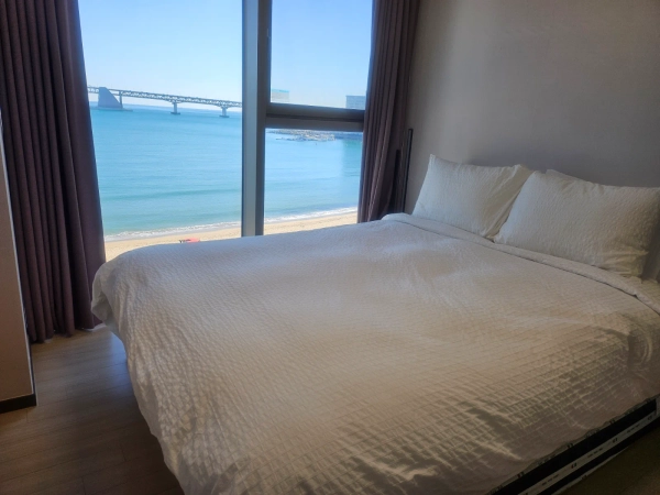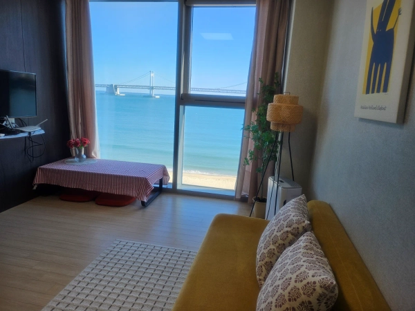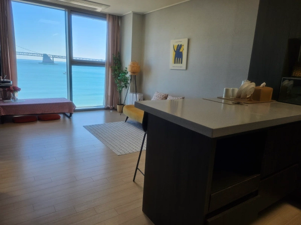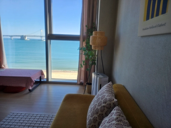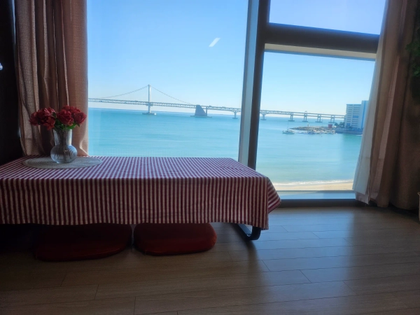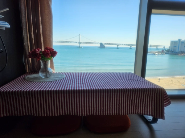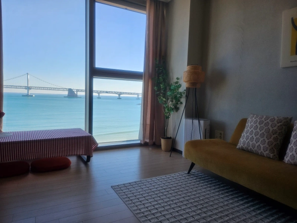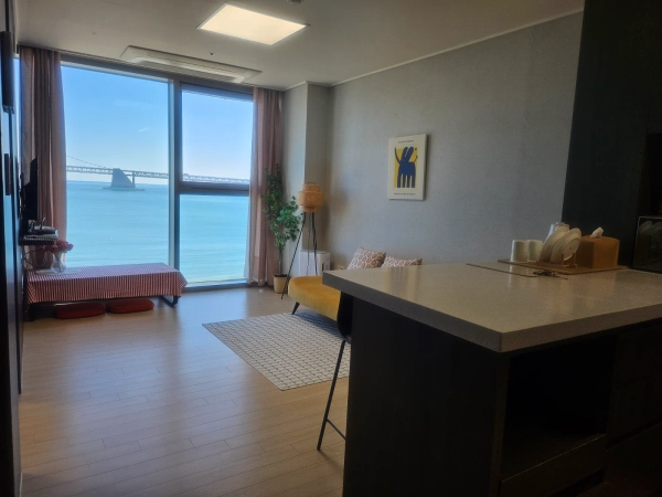 It is a restaurant with a full view of Gwangan Bridge.The area around the accommodation is located in the center of hot places such as cafe restaurants, bar light, and it is a 5-7 minute walk from the subway station It is a no-noise time period from 10 p.m. to 8 a.m.It's a non-smoking building, so you can't smoke in the hotel. Please use B1 for collection There are convenience stores, cafe stores, coin laundry rooms, etc. on the first floor of the building, and there is a restaurant on the second floor, and everyone around it is a hot place.We're at the beach in 30 seconds after we get out of the elevator It is a 5-7 minute walk from Geumryeonsan Station on the subway and you can use taxis from both the front and back of the building