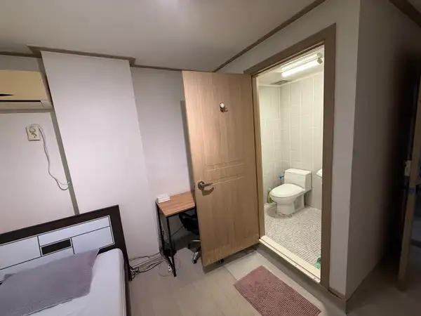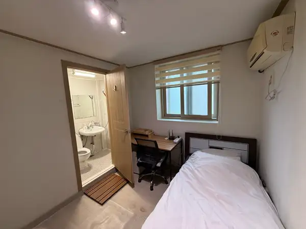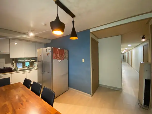 House information : • Address : Seodaemun-gu, SINCHON, Seoul • Nearest station : Sinchon station (line 2) 3 min by walk, lot of bus stops, really good location near the main street of Sinchon (cafes, restaurants, shops, department store, etc). • Building type : International Sharehouse • 3F rooms (shared bathrooms) : bed, desk, chair, closet, wifi, aircon, floor heating, etc • 4F rooms private bathrooms) : bed, desk, chair, closet, wifi, aircon, floor heating, etc • Shared spaces : kitchen on 4F and washing machines on both floors
