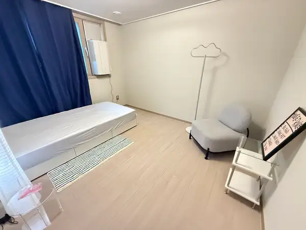 1. Features & Benefit 🚉 Convenient Location: Within walking distance to Cheonan Station and Bongmyeong Station – perfect for commuting or traveling. 🏠 Spacious Apartment Layout: 3 bedrooms with shared living room, kitchen, bathroom, and utility room. 🛏️ Room B: - Exclusive Pantry Storage: The room has no built-in closet, but comes with a private pantry on the left side of the room for your exclusive use. - Bathroom Convenience: A shared bathroom is located right in front of the room, making it very easy to access. - Air Conditioning: Equipped with a window-type AC, ensuring a cool and comfortable stay. - Interior Style: Finished in blue, gray, and white tones, giving the room a chic yet warm and cozy feeling. 🔑 Secure & Private: Each room is equipped with a door lock for personal safety. 🌿 Peaceful Neighborhood: Quiet residential area with supermarkets, convenience stores, and bus stops nearby. 🛋️ Fully Furnished: Beds, desks, Wi-Fi, washing machine, refrigerator, and other essentials provided. 2. House Rules 📌 Shared Spaces - Living room, kitchen, and bathroom are common areas – please keep them clean. - Always clean up after use. - Do not leave personal belongings in the shared spaces. 📌 Noise - Keep noise to a minimum after 10 PM (TV, music, phone calls). - No loud parties or gatherings allowed. 📌 Cleaning & Waste - Follow local rules for trash and recycling disposal. - Separate food waste from general trash. 📌 Visitors - Overnight stays by outside guests are not allowed without prior approval. 📌 Utilities & Fees - Monthly utility fee: ₩80,000 (includes electricity, water, internet). - Late payment may result in a penalty fee. 📌 Safety - Do not share your room’s door lock password with others. - Check emergency exits and evacuation routes upon arrival.