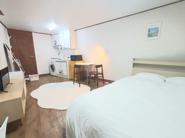 It is located 5 minutes away from Seoul Station Airport Railroad There's a convenience store Myeongdong, Gyeongbok Palace, Namdaemun, Gangnam, Sinchon, Hongdae, and anywhere within 30 minutes There is a double bed that can be used by up to one or two people -We don't allow pets -Anyone other than the tenant is prohibited from entering.· The building is quiet It's on the third floor without an elevator It's a 5-minute walk from Seoul Station Exit 15 It's a flat land with no hills