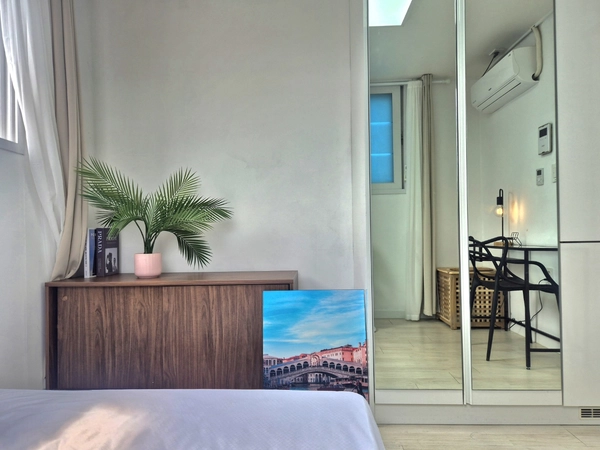 Our accommodation is highly satisfied and has a lot of renewals🎀 🚊 7 minutes at Sadang Station on lines 2 and 4 ✨Very hygienic with new full options and detachable kitchen 🖼️ A pleasant rooftop with an open area 🛏️ Comfortable and cozy hotel-style bedding 🧳 Sufficient storage space with shelves and built-in cabinets 👨✈️Safe as a police station 3 minutes away and a joint front hall where outsiders cannot enter 👍The neighborhood is quiet and clean