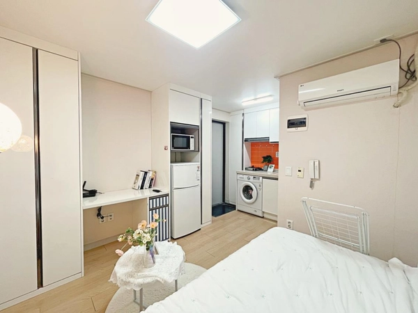 💡 Utility Fees All utility fees are included in the management fee. However, if usage exceeds the normal average, additional charges may apply. Usage can be accurately measured through the meters. 💡 Management Fee Internet is included in the management fee. A personal Wi-Fi router needs to be purchased separately. 💡 Additional Notes Bedding and kitchenware are not provided. (*Bedding rental available for contracts shorter than 2 weeks.) Availability may vary depending on the desired move-in date. 🏠 Room Details Type: Studio (One-room) Features: Fully furnished with air conditioner, refrigerator, washing machine, and induction stove — ready to move in immediately. Note: Bed availability varies by unit. Please inquire via chat for details. ⚠️ Additional Information This unit operates through a non-face-to-face (online) contract process.