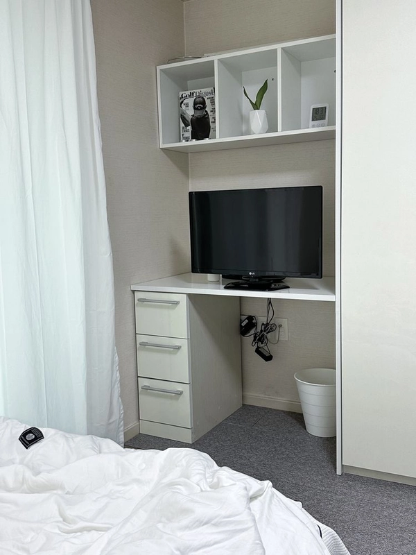 Looking for a safe and well-connected home in Seoul with all the comforts you need? - ✨ Cozy & Secure Stay in Seoul Experience comfortable living in a modern officetel with a bright interior and versatile spaces. Perfect for solo travelers, students, or small groups looking for convenience and a quiet neighborhood. The apartment offers a well-equipped kitchen, laundry facilities, and a cozy living area. Enjoy peace of mind with 24-hour on-site security in a safe and vibrant area close to shops, cafes, and public transport. - *Check-in: 15:00 / Check-out: 12:00 (Please contact us if you need to adjust the time.) *Self check-in is available for your convenience. *Once your booking is confirmed, you will receive a message with full check-in and usage instructions. *On the day of arrival, the building and room access codes will be provided via message. *We kindly ask for your understanding that smoking indoors and pets are not allowed. - 🏡 Accommodation Features [Bedroom & Living] *1 Super Single Bed / Blankets & 4 Pillows 🛌 *35-inch TV 📺 *Round Table & 2 Chairs🪑 *Wardrobe for 100 clothes / 50 Hangers / Laundry Drying Rack *Full-Length Mirror💄 *Mood Lighting💡 *Wireless Vacuum / Smartphone Stand for watching while lying down 🛋️ [Laundry & Cleaning] *Top-Loading Washing Machine 🧺 *Hair Dryer / Toilet Paper / Wash Basin / Shower Towel 🚽 [Kitchen & Dining] *Appliances: Refrigerator, 2-Burner Gas Stove, Microwave, Coffee Pot, Toaster, Rice Cooker, Air Fryer *Cookware: Frying Pan, Pot, Spatula, Ladle, Knife, Scissors *Tableware: 4 Sets of Plates & Cutlery, Wine Glasses, Mugs *Other Supplies: Sponge, Dish Soap, Rubber Gloves 📍 Location Highlights [Transport (Station Area)] *6-min walk: Kkachisan Station (Lines 2 & 5) *15 min: Gimpo Airport / 15 min: Hongdae / 15 min: Hangang / 25 min: Seoul Station / 30 min: Gangnam [Nearby Amenities] 🅿️ Public Parking: 2-min walk 🧺 Coin Laundry: 3-sec walk 🏪 Convenience Store: 3-sec walk ☕ Starbucks: 9-min walk 🛒 Daiso: 5-min walk 💄 Olive Young: 6-min walk 🚨 Police Station: 3-min walk 🏋🏻♀️ Gym: 6-min walk 🍛 Korean Buffet: 1-min walk