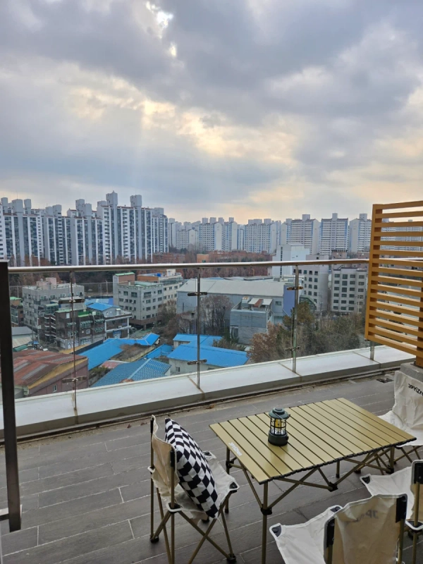 It has a large floor-to-ceiling window for good lighting, and this space, which has a cityscape over a glass window, It provides a comfortable rest when you want to rest and concentrate. This is a space where you can enjoy the open view through a terrace that connects directly from the room. At night, the city lights come in subtly to add sensibility. It's a beautiful place to stay for a while. - Moving in is non-face-to-face - Pet access is prohibited. - Actually smoking is prohibited. (If caught, it is difficult to forcefully exit, refund, or return the guarantee.) - It's a 20-minute walk from Mangpo Station. - It is 5-6 minutes away from Samsung Electronics and Samsung Electro-Mechanics. - It is close to Kyung Hee University International Campus. (If you take bus number 9 from Daegwang Village Station, you'll get to Kyunghee University campus.)