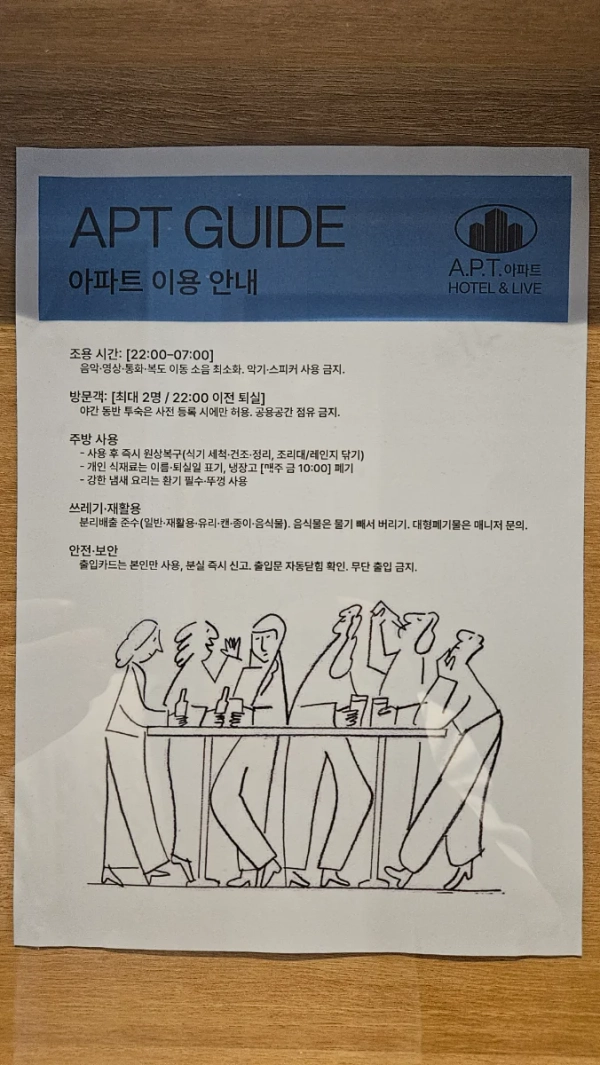 It is a modern residential space with a Coriving concept, apartment hotel and rib Ansan Hanyang University Erika branch! You can share your kitchen, lounge, and gym together while ensuring private rooms and private bathrooms. [Room composition] Queen bed, refrigerator, microwave, 55-inch TV, bathtub, narrow table, mirror, desk, round table, hanger shelf, wireless charger [Guide to the room] It is a standard room perfect for solo or couple trips. There is a convenient two-door refrigerator and microwave oven, so a simple snack or drink is ready! There is a bathtub in the room, so you can enjoy the spa Finish your day comfortably in the neat and cozy A.P.T Hotel & Liv Ansan Standard Room~ [Parking information] Seven parking spaces in the hotel (recommended for advance inquiries as we are negotiating) In case of additional vehicles, information on the use of nearby parking lots will be provided Thank you for your cooperation for smooth parking operation. [Other instructions] - All utility bills are included in the maintenance fee. - Moving in is done non-face-to-face. - The minimum number of nights is 30 days. - If you lose your card key, you will be charged 20,000 won. - Room numbers and designs are subject to change depending on hotel operating conditions. [Information on entering - Apartment Hotel and Liv Ansan Branch] Hello, guests, and we sincerely welcome the contract. Apartment Hotel & Liv Ansan Branch is a new space that offers premium coribing studio apartments, and it is a full-option accommodation that allows immediate and short-term occupancy. ※ Management fees and utility bills are free. (However, indiscriminate use is the reason for termination of the contract immediately.) ※ Public facilities: gym, restaurant, kitchen, warehouse, laundry room, etc ※ Common space on the 2nd floor: Common cooking and laundry room available (Please use it neatly) [Introduction to the check-in process] (1) This accommodation provides non-face-to-face admission. (2) Mandatory to bring ID: Identification required through kiosk after joint entry (4) → Non-face-to-face reception of room keys through kiosks after entering (intercom) (5) When you check-out, return the key is required (a penalty of 20,000 won will be charged for non-payment) (6) Building operates 24-hour unmanned control system – use kiosks if necessary [Information on living and using] (1) Separate collection is possible in the external separate collection center on the first floor, ⟶ Please separate general / recycling / food waste. (2) NOISE NOTE: For other occupants, ⟶ Especially after 10 p.m., please maintain a quiet environment. ※ If you have any additional questions, please contact 010-5500-5332. ※All auxiliary facilities are available 24 hours a day. (Manner time: 22:00 p.m. to 7:00 a.m.)