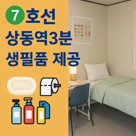 It boasts a pleasant environment as a mini room The remodeling allows you to use a quiet, clean room. It's a secure single life 1 room per person No pets allowed Only those who enter are not allowed to enter You can't damage people around you It's a three-story elevator building. The surrounding business district is the best It is located 3 minutes walk from Bucheon Sangdong Station on Line 7