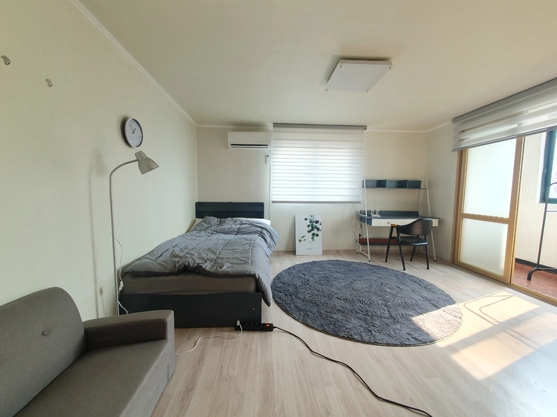 MIRAI Korea — a specialist accommodation company for international guests. 1) Overview A 33.0㎡ (approx. 355 sq ft) home just a 9-minute walk from Inha University. It sits in the heart of the campus area, surrounded by many restaurants and convenience stores, while the interior itself stays very quiet. The layout includes a spacious room, a separated kitchen, a veranda, and a toilet, with a total of 1 wide single bed. A very large premium single room; two people can stay without any extra charge. Bright, airy, and quiet—an excellent choice near campus. This is a private space not shared with anyone else—exclusively for you or your friends. Most neighbors are Inha University students, so the area is generally safe and you can go out safely even late at night. Amenities: • Vacuum cleaner • Washing machine • Fully equipped kitchen • Refrigerator • Air conditioning in every bedroom • Heating • Cleaning tools • Ample tableware and cookware • Wi-Fi Host notes • The host lives nearby and can respond quickly if anything comes up. • A rental contract for ARC (Alien Registration Card) applications can be provided. • Communication available in English, Japanese, and Korean. • The host is an Inha University graduate with experience hosting 400+ exchange students. 2) Check-in & House Rules • Move-in is generally self check-in (contactless). • After your booking is confirmed, we’ll share the detailed address and guidance. • Your door code will be sent the day before arrival. • No smoking indoors. • No pets. • You may change the door code during your stay; please restore it to the original code before checkout. 3) Transportation • 9-minute walk to Inha University. • Very close to bus stops. • About 10–15 minutes by bus to Juan Station; buses run roughly every 5 minutes.