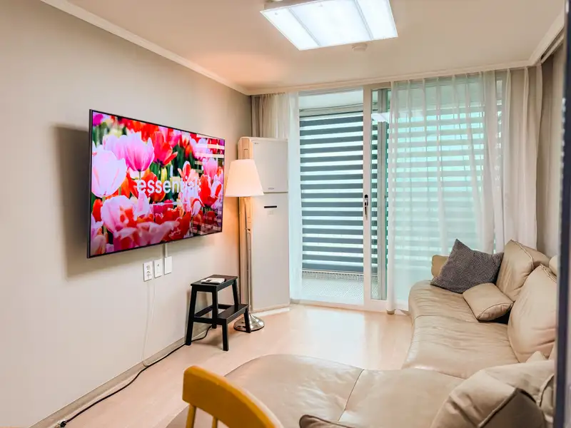 ☑️ A three-room apartment with a bright wood and white combination completed for the entire remodeled interior ☑️ Full-option package with doorways, built-in dressing room, washing dryer and large smart TV ☑️ Sensuous and comfortable interior composition with midcentury modern design ☑️ 2 bedrooms, 1 dress room, 1 bathroom, living room, kitchen, veranda ☑️ Free parking available in the apartment complex ☑️ Located on the border between Icheon and Yeoju, it is easy to access both sides. Located on main roads and major roads, it is located about an hour away from Seoul (automobile) ☑️ SK Hynix, Kyeonggang Line Bus Station: 10-15 minutes away (automobile) / 30 minutes (bus) ☑️ KTX Ganam Station Station: 10 minutes away (automobile)