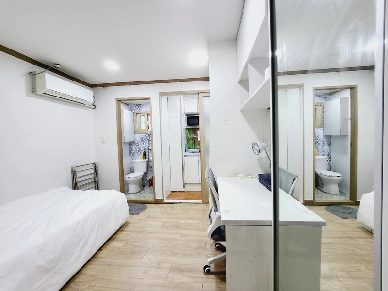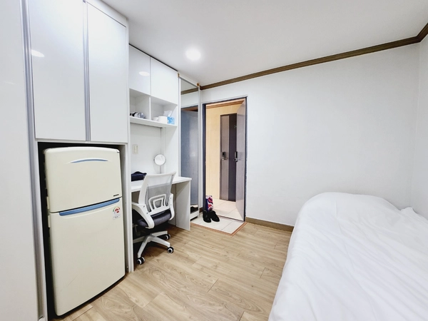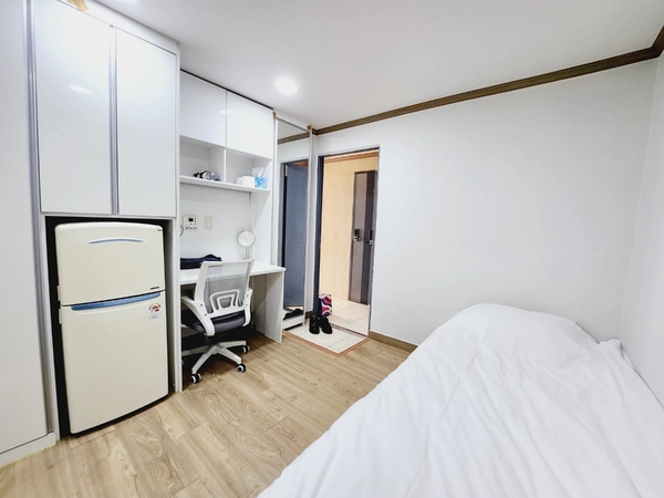 MIRAI Korea — a specialist accommodation company for international guests. 1) Overview A 16.5㎡ (approx. 178 sq ft) home just a 6-minute walk from Inha University. It sits in the heart of the campus area, surrounded by many restaurants and convenience stores, while the interior itself stays very quiet. The layout includes a room, a separated kitchen, and a toilet, with a total of 1 single bed. A compact single-person studio. This is a private space not shared with anyone else—exclusively for you or your friends. Most neighbors are Inha University students, so the area is generally safe and you can go out safely even late at night. Amenities: • Vacuum cleaner • Washing machine • Fully equipped kitchen • Refrigerator • Air conditioning in every bedroom • Heating • Cleaning tools • Ample tableware and cookware • Wi-Fi Host notes • The host lives nearby and can respond quickly if anything comes up. • A rental contract for ARC (Alien Registration Card) applications can be provided. • Communication available in English, Japanese, and Korean. • The host is an Inha University graduate with experience hosting 400+ exchange students. 2) Check-in & House Rules • Move-in is generally self check-in (contactless). • After your booking is confirmed, we’ll share the detailed address and guidance. • Your door code will be sent the day before arrival. • No smoking indoors. • No pets. • You may change the door code during your stay; please restore it to the original code before checkout. 3) Transportation • 6-minute walk to Inha University. • Very close to bus stops. • About 10–15 minutes by bus to Juan Station; buses run roughly every 5 minutes.
