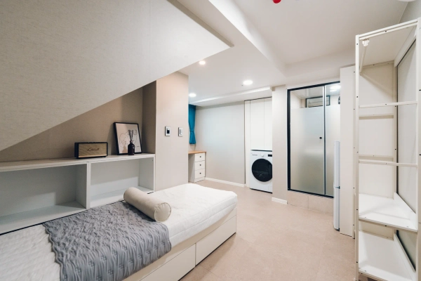 1. Individual Room Features - a spacious room, a bed - Individual LG Inverter Air Conditioner - Floor Heating (Copper Condensing Boiler) - 106-litre two-door refrigerator with refrigeration and refrigeration function - Drum washing machine for both dryers - Microwave oven - LX Hausys Built-in Chapter - Wired and Wireless Wi-Fi (High Speed Internet) - Digital door lock - equipped with shower and toilet - desks and chairs 2. a shared kitchen area - a kitchen designed with a modern touch - Induction & Cooking Facilities - Large dedicated dryers and washing machines - convenient coldness.a hot water purifier - complete with kitchen utensils 3. the surrounding environment - 10 seconds to GS The Fresh Mart! - Community Center in Daehak-dong, 150m away - There is a post office 250m away, making it easy to send mail and delivery - Hospital, pharmacy, close proximity - There are many restaurants and cafes - Paris Baguette on the bottom floor and Starbucks in less than a minute - The Dorimcheon Stream where you can jog is right in front of you!! 4. Facilities designed for the convenience of occupants and admission fees - Install the latest boiler responsible for winter heating - Warm hot water supply at any time in cold winter - An air conditioner that can be adjusted to the temperature desired by the occupants for summer cooling - CCTV installation (no unauthorized access by outsiders 24 hours a day) - Affordable admission fees (including administrative fees and utility bills such as electricity, water, gas, and internet usage fees) - Use ALC block to block sound insulation from neighboring rooms We don't allow pets. Outsiders other than those who enter are not allowed to enter. You can't make a fuss.
