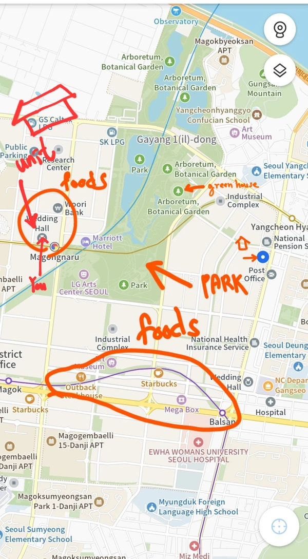 3 minutes on foot to the nearest subway station. called Magongnaroo station, airport train, Metro 9 double line crossing station which is very convenient. 20 minutes, two stops away from Hongdae by Airport train. from ICN, no need to transfer. 40 minutes to Myeongdong station. 40 minutes to Itaewon station. 54 minutes to Gochuck SKY Dome 10 minutes to Gimpo airport take the limousine bus 6003 to Magok station line 5, walk up to the stay for 15 minutes on foot. 20 minutes interval bus it is. the apartment is nice and cozy which comes at the cost of being about an hour away from main attractions like myeongdong or gangnam. if you plan on only leaving once a day, this is fine. if you stay at the city center, at the cost of half of the size and double payment, it's reasonable both of them. because it's the market. Most of the guests loved my accommodations. it's on the reviews. and this area is itself hot place for younger generations. so secured, safe place to stay even a lady alone. it's Yin and Yang. You can get near to somewhere, but have to let go of the others. Seoul is big city. I hope points taken.