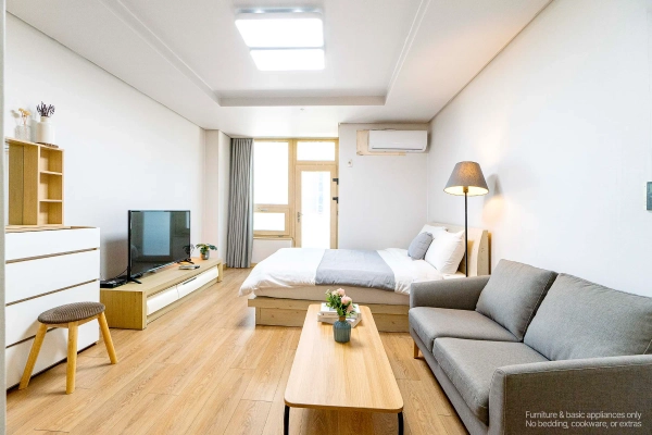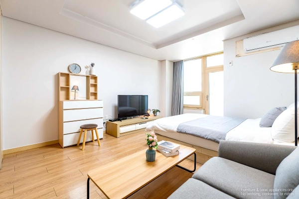 Your Gangnam City Base — A High-Floor Studio at EZ Tower A Simple Studio Made for City Living This fully furnished studio offers a clean and efficient layout designed for comfortable daily life. Set on a higher floor, the space feels bright and private — ideal for solo professionals, business travelers, or long-stay guests who value convenience above all. Shape as You Wish, Stay as You Are Skip the hassle of furniture shopping. Your home comes complete with everything: stylish furnishings, smart TV, and even a washer. Want to adjust it to your lifestyle? With our customization service, you can add or remove furniture to make the space truly yours — because your home should feel like you. We Handle the Hassle, You Enjoy the Comfort With a professional management team handling maintenance and care, youʼre free to focus on what matters — whether thatʼs getting into your flow at work, enjoying Gangnam’s nightlife, or simply relaxing at home after a busy day. Live at Gangnam’s Most Dynamic Address From international dining and late-night spots to shopping malls, gyms, and major office towers, everything is just steps away. With Gangnam Station right nearby, moving anywhere in Seoul is effortless. Flexible Stays for Global Residents We offer clear, flexible lease terms from one month onward — ideal for expats, professionals, and international guests seeking a furnished studio in the center of Gangnam. Ready to live in the heart of Gangnam? Just bring yourself — your new stay at EZ Tower begins here. * Photos were staged for photography; only furniture and appliances are included. Bedding and household items are not provided. * Photos were staged for photography; only furniture and appliances are included. Bedding and household items are not provided.
