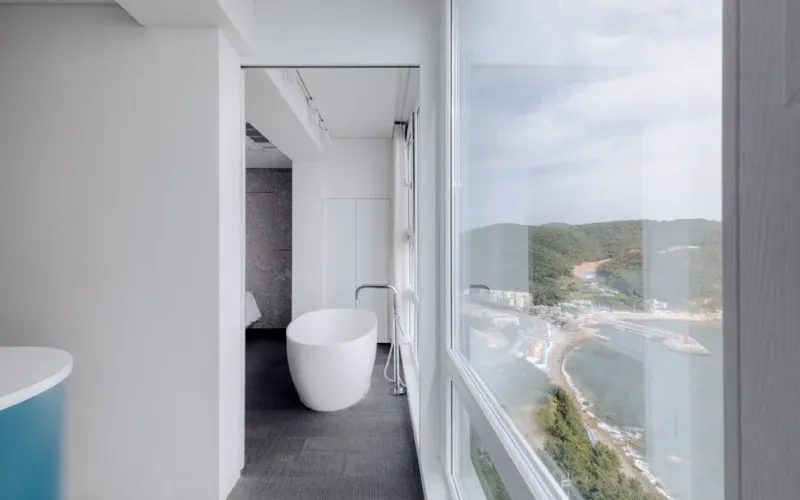 Located in front of Yeongdo beach in Busan an apartment with up-to-date interior design 24 square room 2, living room 1, bathroom 1, kitchen 1, multipurpose room Smart beams, smart TVs, ceiling speakers, IOT lighting facilities, IOT door locks Sea View Door Lock OTT service