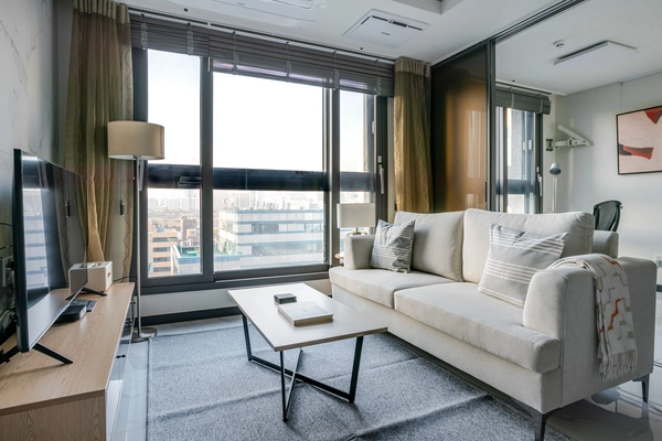 Show up and start living from day one in Seoul with this pretty accommodation. You’ll love coming home to this thoughtfully furnished, beautifully designed, and fully equipped Hangangno 3(sam)-ga home with stunning views over the city. Gorgeous furniture, fully equipped kitchen, smart TV, and a premium wireless speaker are just a few of the amenities you’ll find inside this one bedroom accommodation. Ideally located in Seoul, you’ll find a lot to love outside as well. When you’re ready to relax, you’ll be happy to discover every Blueground bedroom comes with superior quality mattresses, luxury linens, and cozy towels. We handle everything so you can simply show up and start living. This accommodation also offers in-accommodation laundry. This Blueground accommodation has flexible lease options, allowing you to book it for one month, a year, or more. We take great pride in ensuring every photo displayed is shot in our own units with our actual furnishings. That said, we regularly refresh our decor and furniture arrangement, which may differ from what’s pictured. Parking is available only for registered residents, and advance registration is required. Certain documents may be necessary for registration, so please contact the building management office. In addition, parking fees may apply depending on the apartment, and some buildings may only provide mechanical parking.