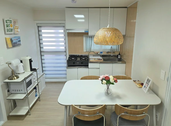 -Konkuk University Station 4 minutes, Seongsu-dong 5 minutes, and it's a lively main street. -A special start to your trip to Seoul, stay in an emotional accommodation. (3rd floor, 2 rooms, 2 queen-size beds) Enjoy the trendy sensibility of Yeonmugil-gil in Seongsu, Konkuk University's charming cafe and taste street, lamb skewer street, and Hangang Park on foot. -It's a spacious two-room structure, so there's a lot of space for luggage. -Each room air conditioner, free Wi-Fi, internet smart tv, washing machine, dryer, refrigerator, coffee machine, queen bed 2, sofa, table, dresser, big mirror, dressing table, microwave, gas stove, electric pot, vacuum cleaner, various kitchen appliances. (Pot, frying pan, cooking utensils, cutlery, cup...) !!! Rules of use *Noiseism/This is a place where residents live together. Please keep your manners after 9 o'clock. *Please note that indoor smoking and pets are never allowed. (Special Office consumption is charged 200,000 won.) *Due to the nature of the rental, you need to purchase and use daily necessities. Transportation *Take number 6013 from the airport and get off at the stop in front of Konkuk University Entrance. *It is 4 minutes away from Konkuk University Station on Line 2. It is so good to travel to Seoul by subway. (Bukchon, Gangnam, Hongdae, Jongro, Jamsil, Lotte World, Myeongdong...)