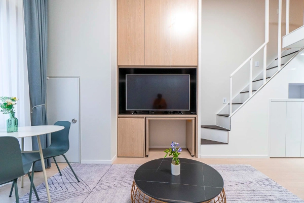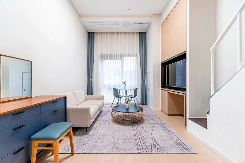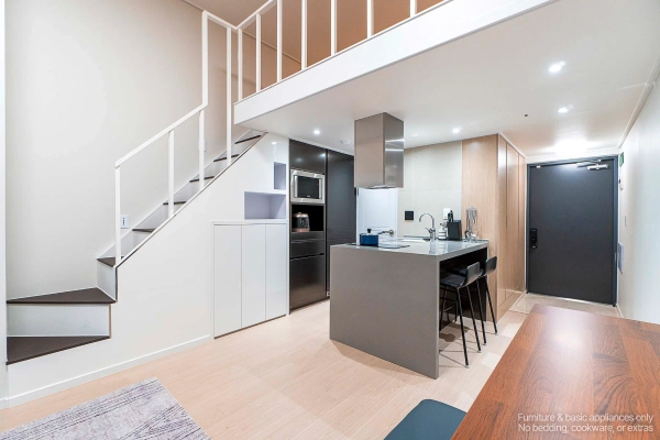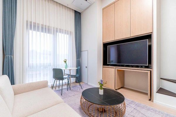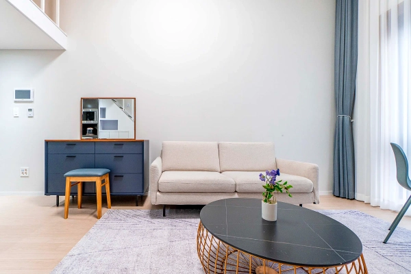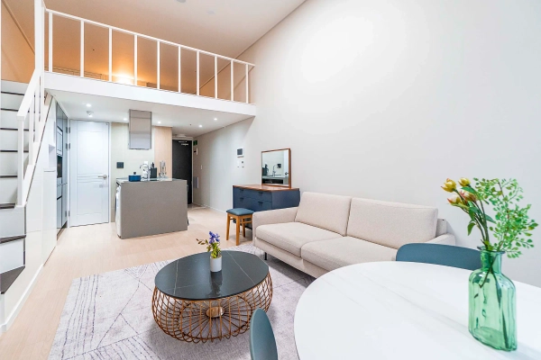Park L9 – Modern Loft Studio in the Heart of Samsung-dong Just a 1-minute walk from Seonjeongneung Station, Park L9 offers a premium loft studio where modern design meets everyday comfort. The split-level layout creates a sense of spaciousness, separating your living and resting zones while keeping everything within reach. Shape as you wish, Stay as you are Skip the hassle of furniture shopping. Your home comes complete with everything: stylish furnishings, smart TV, and even a washer. Want to adjust it to your lifestyle? With our customization service, you can add or remove furniture to make the space truly yours — because your home should feel like you. We Handle the Hassle, You Enjoy the Comfort With a professional management team handling maintenance and care, youʼre free to focus on what matters — whether thatʼs getting into yourflow at work, discovering the best of Seoul, or simply enjoying a quiet evening at home. Where Location Meets Lifestyle Located in Samsung-dong, Park L9 connects you directly to Gangnam’s best. COEX Mall, Starfield Library, and major business districts are within walking distance. Right next door, the UNESCO World Heritage site of Seolleung and Jeongneung Royal Tombs offers a unique green escape for walks and relaxation. Tailored to Your Timeline With flexible lease terms from one month to one year, this loft studio adapts to your plans. Transparent rental agreements provide peace of mind, whether for a short- or long-term stay. Ready to move in? Welcome to Park L9 — where loft living meets the modern heart of Samsung-dong. * Photos were staged for photography; only furniture and appliances are included. Bedding and household items are not provided.