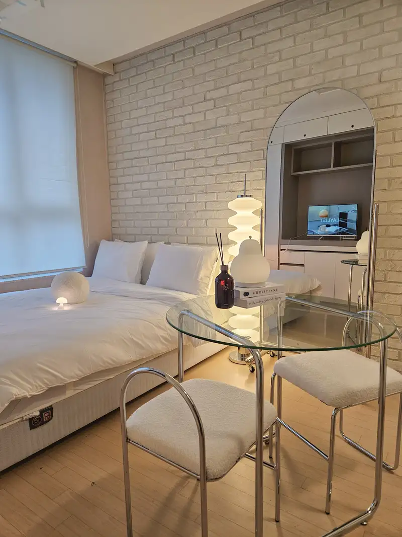 🧡 Recently updated interior with new furniture 🧡 Prime location in the heart of Jeongja-dong, close to shops and conveniences 🧡 Queen-size bed frame and mattress provided 🧡 Comfortable and convenient space for a pleasant short-term stay ✅ After the contract is confirmed, the move-in process will be handled contact-free, with instructions provided on the morning of the contract start date. ✅ Usage details will be sent via text on the morning of the contract start date. ✅ If there are no prior or following reservations, or if cleaning is completed early, check-in and check-out times may be adjusted. ✅ No smoking indoors / Pets are strictly not allowed. ❎️ Registration of residence is not allowed. ✅️ This is a short-term rental space, so bedding and amenities are generally not provided and may differ from the items shown in the photos. If you need additional services, please send a message, and we can connect you with a setup service.