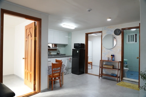Sungkyunkwan University's back gate is within 3 minutes. It has good lighting, quietness, and convenient transportation. Within 2 minutes on foot of the village bus (200 m) It's near the university, so there are a lot of things I need