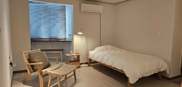 #Duharu is a recently remodeled rental house. There are 4 rooms with warm white and wood tones It is a full rental house that can be used by up to 7 people. The bed of King + Queen + Super Single 3) is divided into 4 rooms You can stay in a relaxed space. Enjoy the dining area with the kitchen! The south-facing window overlooks the blue sea. ⭐️ Each room has its own bathroom, making it convenient and free to use the dining space. ⭐️ It consists of top-notch bedding consisting of high-quality temperature flow and & Nordic bedding. ⭐️ Sea view/April cherry blossom view stands out. ⭐️ It is a full-land private house that can also be used in a comfortable family unit and a company team workshop. There are various amenities, including E-Mart/Starbucks/McDonald's. Along with various living infrastructures, including post office banks, there is a nearby Seogwipo Police Station, so security is good. -It's hard to be with pets -It is not possible to stay outside of the standard number of guests - I don't have a television. Instead, you can quietly focus on yourself. The transportation is convenient. There are many parks including tennis courts, basketball courts, golf courses, and soccer fields nearby. It's located on the second floor without an elevator The 800 limousine bus to the airport is a 10-minute walk away. ( Seogwipo Post Office in Hacha City / Seogwipo City Hall in case of boarding)