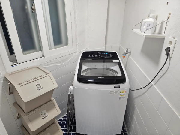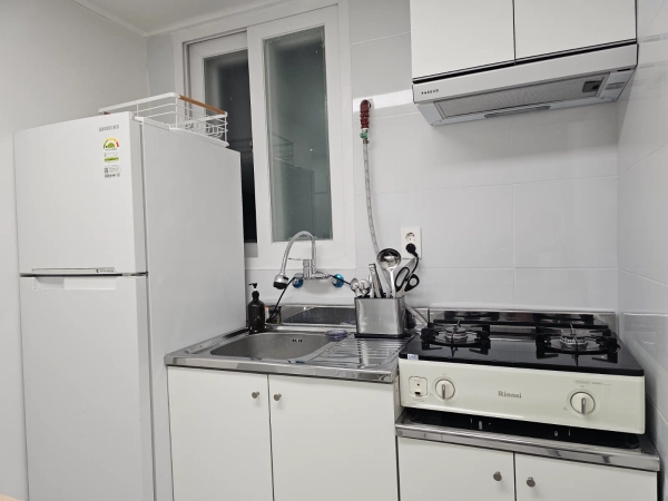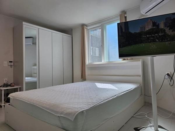 Custom Interior for Short-Term Rental Based on a bright and clean white-tone interior design. Since this space is intended for long-term stays, we have maximized storage capacity. Convenient Location 3 minutes on foot from Gil Hospital 5 minutes by bus (15 minutes on foot) to the Art Center Nearby convenience stores and Homeplus Comfortable Living Options Stand TV, queen-size bed, blackout curtains, washing machine, and more Entrance equipped with a security CCTV system Room Features Queen-size storage bed, 4-compartment wardrobe, 3-compartment storage cabinet, Wi-Fi, air conditioner, washing machine (shared laundry room), blackout curtains Kitchen Features Island dining table, refrigerator, gas stove, microwave, electric kettle, and more Pet & Smoking Policy No pets allowed No indoor smoking Check-in / Check-out Check-in: after 3:00 PM Check-out: by 11:00 AM