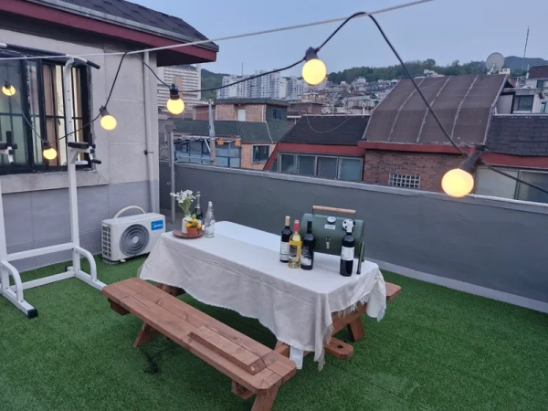 This is a premium accommodation recently remodeled in the Seoul National University Venture Town Station area, a 5-minute drive from Seoul National University. The subtle hallway interior and personal air conditioner, including a private bathroom, a customized bed on the second floor, and a cozy white blanket will give you the feeling of living in a hotel. We seek perfection in hygiene and cleanliness by preventing common parts twice a week. The wine table bar on the rooftop harmonizes with artificial turf, so if all occupants make a time reservation You can use it for free. Please participate in the best accommodation