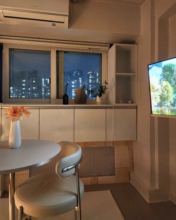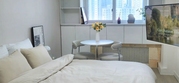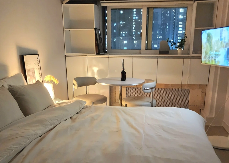 <Introduction to the room> 🚉Quartruffle station area 3 minutes walk from Aeogae Station / 10 minutes walk from Gongdeok Station and Ahyeon Station (easy to work and travel to all parts of Seoul) ✨️Cosy space in the city view In a wide round table, you can work from home during the day, and sleep well at night with blackout blinds 🏠 Queen-sized bed, stand lighting, smart TV, free wifi, washing machine, drying rack, air conditioner, refrigerator, microwave, dryer, table and chair, electric pot, induction, tableware, etc * If you need an explanation in English. Just drop me a message. <How to use the room> - You can check the purpose of the visit and the number of residents in advance through chat before reservation - Moving in will be conducted non-face-to-face - When the contract is confirmed, we will send you a message on moving in and using it (If you have any questions about moving in or using it, please feel free to talk about it.) - Admission time: 4 p.m. / Exit time: 11 a.m - If you need to adjust the moving in and out time, please contact me in advance (consultation is available after consultation) <Transportation> 🚌 3 minutes on foot from the bus stop (airport bus is available) - Various routes to business districts and tourist attractions 🚄 3 minutes walk from Aeogae Station on the subway and 10 minutes walk from Gongdeok Station – Line 5 and 6, Airport Railroad, Gyeongui Central Line 🚈 Move to Mapo, Yeouido, Sinchon, Seoul Station, and Hongdae within 10 minutes – Best location for work and travel 🚆 When using airport rail from Gongdeok Station, Gimpo Airport takes 20 minutes / Incheon Airport 50 minutes <Additional Explanation> ✔ Queen-sized beds can accommodate up to 2 people ✔CCTV, safe security with 24-hour security guards ✔Near amenities: Hospital, Olive Young, Starbucks, convenience store, restaurant, 24-hour laundry room, etc ✔Hongdae, Sinchon University, Yeouido Business District, Yongsan, Gwanghwamun, Gyeongbokgung, Dongdaemun, Government Complex, Hospital, Mart, Traditional Market, Namsan, Museum, Seoul Station, Airport Railroad, etc. are close and accessible - You can watch OTT, YouTube (using your own account) with a smart TV, and you can watch entertainment and dramas with a remote control by connecting various broadcasting channels in Korea (wireless Internet, wired local network installed) - All bedding, towels, and sterilization after guests leave the room - Host-managed operations for clean stay-at-home conditions - Unable to report transfer - No indoor smoking, no pets allowed (Separate charges for odors and contamination caused by leaving the hospital) - Since it is a residential space with neighbors, it is necessary to take care of behavior that causes noise after 9 p.m. (No party, no loud singing) - Additional charges may be charged for damage or contamination of goods - Resolve daily problems such as laundry, cleaning, courier, delivery, and more independently. - No refund due to personal and subjective changes in schedule or change of mind after moving in, except for the occurrence of facilities and maintenance problems during the period of use Welcome to Korea. Make a special experience at Enco Stay :)