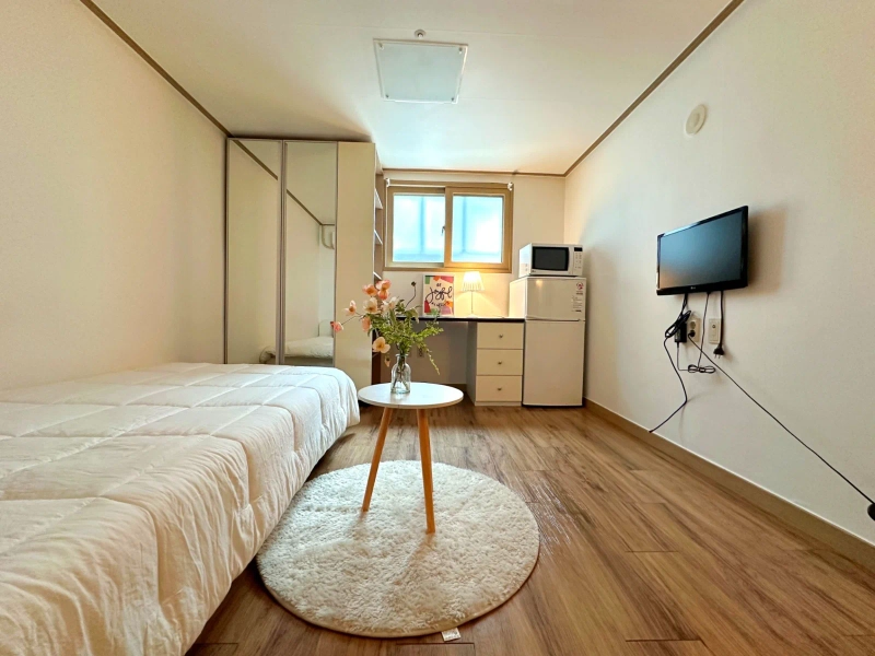 💡 Utility Fees All utility fees are included in the management fee. However, if usage exceeds the normal average, additional charges may apply. Usage can be accurately measured through the meters. 💡 Management Fee Internet is included in the management fee. A personal Wi-Fi router needs to be purchased separately. 💡 Additional Notes Bedding and kitchenware are not provided. (*Bedding rental available for contracts shorter than 2 weeks.) Availability may vary depending on the desired move-in date. 🏠 Room Details Type: Studio (One-room) Features: Fully furnished with air conditioner, refrigerator, washing machine, and induction stove — ready to move in immediately. Note: Bed availability varies by unit. Please inquire via chat for details. ⚠️ Additional Information This unit operates through a non-face-to-face (online) contract process. On-site visits are not available, but verified photos and videos can be provided.
