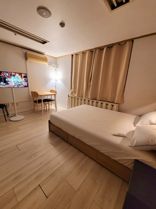 Room Description ✅ The room is thoroughly cleaned by a professional cleaning company and the host personally. ✅ Located less than 1 minute from Sinchon Station (Line 2) — a prime location. ✅ A city-view studio ideal for solo travelers or couples. ✅ Equipped with a double locking door system for extra security. ✅ A police station is located within a 2-minute walk, ensuring safety. ✅ Nearby landmarks include Hongik Univ. Station, Yonsei Severance Hospital, and major universities (Hongik, Yonsei, Ewha, Sogang), as well as E-Mart and Daiso. How to Use / Check-in Guide ✅ Self check-in is available. The door code will be provided on your check-in day. ✅ Once your reservation is confirmed, detailed check-in and usage instructions will be sent. ✅ Pets are not allowed. ✅ Smoking is strictly prohibited. If smoking is detected, a special cleaning fee of 300,000 KRW will be charged after check-out. ✅ According to the Public Sanitation Management Act, toilet paper and personal toiletries cannot be provided. Additional Information ✅ Upon request, a super single-size mattress topper can be provided. ✅ Damage or contamination to items may result in compensation charges. ✅ The room is cleaned and ready for immediate move-in. Transportation ✅ 1-minute walk from Sinchon Station (Line 2). ✅ Bus stop in front of the building with direct routes to Gangnam. 📢 Includes local, express, intercity, airport, and seat buses. ✅ Easy to catch a taxi nearby. ✅ Many public parking lots available around the property. ✅ Excellent transportation accessibility. Management Fee Information ✅ All utility bills are included in the management fee.