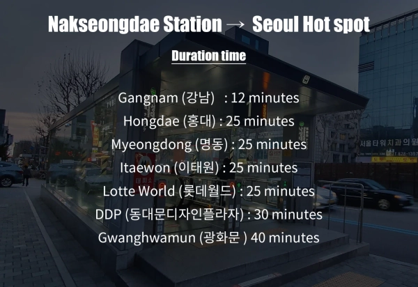 The middle of Seoul's biggest hot spot Gangnam and Hongdae! All white hotel-style bedding! The fastest Internet speed and cooling/heating facilities in Korea! OTT service and all Korean TV channels! Dark curtain and smart lighting for jet lag! Completely exclusive use space from laundry, kitchen, and bathroom! Korean/English Manual Supplied! We cater to your trip to Seoul and business at the most reasonable price. ✅️Host's Promise: Bedding is the most important element of all accommodation quality. Each team provides newly washed hotel-style bedding. If unwashed bedding is provided, we will give you a full refund. (There may be wrinkles due to the nature of the pure cotton blanket.) This is a Korean full-option studio with a personal washing machine and individual cooling/heating system. Korean-style studio apartments aim for the fastest internet speeds and private living conditions in the world. There are blackout curtains and smart lights to always maintain the desired illuminance, helping you adjust to jet lag. - Space: One room (6 pyeong for 2 people, 8 pyeong for 4 people) *The bathroom, kitchen, and washing machine are all included in the room. - Bedding: Hotel-style bedding (double room: double size bed / 4 room: Queen size bed + Topor sofa bed) *All guests are newly replaced with all-white bedding. - TV: 32-inch stand type *It provides all TV channels in Korea, and you can log in to all OTT services with a separate Chromecast installation. - Amenities: Washing machine, body wash, shampoo, conditioner, towel, hair dryer, diffuser, garbage bag - Furniture: Table, chair, hanger, smart lighting *There is a light that can be adjusted with a smartphone. - Air conditioning: individual air conditioning - Heating: Hot water boiler ondol *It is heating using hot water, Korea's unique heating method. - Kitchen: Induction, pot, frying pan, tableware - Nearby amenities: There are convenience stores, markets, bars, and restaurants that are open 24 hours a day within a 200m walk. -It is located in a quiet residential facility. Please refrain from making noise late at night for the residents around you. -At the time of the party, you will be checked out immediately. -Please place the interior props and furniture in place. -Please separate the remaining food and trash in the bag provided and collect them at the designated place where we will guide you. -Please clean up and wash the dishes used. -If you enter/exit without permission, you will be charged twice the amount of use. -No smoking is allowed in the accommodation. Please smoke outside the building, and 100,000 won will be charged for indoor smoking. -Foods with strong smoke or smell, such as meat and grilled fish, cannot be cooked. Prohibits the use of other firearms other than induction. -Since there is a slope, I recommend customers with a lot of luggage to Nakseongdae Station using a village bus. -You may be charged for bedding, wallpaper, furniture, equipment contamination, damage and loss that are checked at checkout. The front door and guest room double door lock provide high security. We have minimized furniture to make it easier to spread the carrier, and prepared a folding table with a size of 80cm enough for work and meals. It is located on the 1.5th floor of the building, so you can check-in without any burden even if you have a carrier. It's in a residential facility about 200 meters from the high street, At the same time you can enjoy the high street, you don't suffer from any noise at all. Accommodation is located 10 minutes walk from Nakseongdae Station, the center of transportation in Seoul, 3 minutes away from the village bus, and the basic taxi fare distance. You can travel comfortably to all the tourist attractions in Seoul. Nakseongdae Station -> Hotspot Time Sharosu-gil: 3 minutes Gangnam: 12 minutes Garosu-gil: 20 minutes Hongdae: 25 minutes Myeong-dong: 25 minutes Itaewon: 25 minutes Lotte World: 25 minutes DDP: 30 minutes Gwanghwamun: 40 minutes Incheon Airport: 85 minutes (Contact the host for time required with other regions!) * Experience "Inheon Market," a traditional Korean market, within a minute's walk from your accommodation. You can enjoy a variety of traditional Korean food at an affordable price!