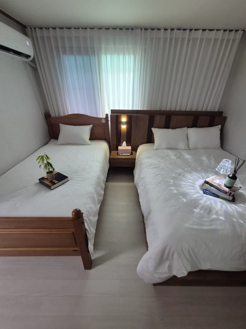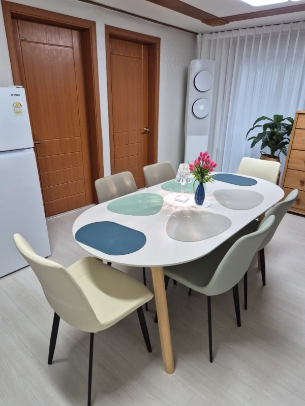 A spacious accommodation suitable for family and group guests, equipped with luxury bed frames, Italian mattresses, and antibacterial organic Eve branded bedding for comfortable and hygienic accommodation. Since there are no residents except for the accommodation on the fifth floor, the night when shopping malls and offices close becomes a private haven in the city without worrying about noise. Provides additional memory foam mattresses for one person in three bedrooms, with 4 beds, 7 people, and 8 people. It has a 55-inch smart TV, a living room with a sofa, a large table for six, and an extra bench that allows you to watch a variety of channels, making it perfect for family and group gatherings. You can cook properly with a perfect kitchen and cooking utensils. (Microwave, gas stove, toaster, refrigerator, ice cold and hot water purifier, electric kettle, electric rice cooker for 10 people) The free parking lot of the accommodation is available in the evening and on weekends.You can park up to two cars. It is a legal shared accommodation and can be used by both Koreans and foreigners. 🚫 Smoking inside and outside the building is prohibited. (If you are caught smoking, you will be charged 200,000 won for special cleaning due to exit measures or smoking.) 🚫 No party 🚫 No companion animals ✔️ Separate recycling bins/general bins/food bins and discharge them to the first floor of the building after 7 p.m. on Mondays, Wednesdays, and Fridays. ✔️Don't throw food away in the toilet. Foreign substances have been charged for repair in case of failure! ✔️ No food on the bed, heavy stains that cannot be washed away may be charged for repurchase. It is a residential space for the owner of the 5th floor of the 5th floor commercial building. It has an Elbe, so you can move conveniently even if you have luggage. It is a pharmacy on the first floor, an academy on the second and third floors, and an office on the fourth floor, and there are no residents after 10 p.m., so a quiet rest area is guaranteed. There are two parking spaces available in the building's parking lot. Please leave a visitor's note and contact information on the 5th floor in the vehicle. A total of 15 minutes, including walking, from Mokdong Station on Line 5 or Deungchon Station on Line 9, after moving 3 to 4 stops by bus It is easy to travel by bus or subway lines such as Hongdae, Yeouido, and Gwanghwamun. It is easy to use the subway and airport bus 6003 from Gimpo Airport and Incheon Airport.