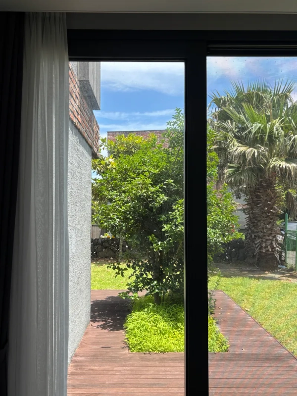 Ten minutes away from Seongsan Ilchulbong Peak, this detached two-story accommodation consists of three rooms and two bathrooms. Both the 1st and 2nd floors have terraces, and you can have a barbecue on the 1st floor terrace. And from the living room and room on the first floor, it is directly connected to the yard terrace. You can also accompany your pet.