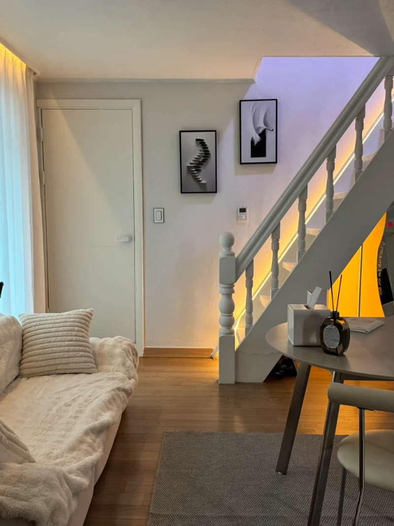 🏙 30 seconds on foot from Exit 1 of Konkuk University Entrance 🎨 White & Gray Modern Interior 🖥️ Samsung Electronics has genuine Samtenbymi 🏡 4 rooms (multi-story 2 room floor height 185 cm) 🛏 4 queen-sized beds & 1.5 toilets 👨👩👧👦 Reservations for up to 8 people 🛠 First move in since recent remodeling 📍 Best location in Konkuk University, near the traditional market 🛍️ Near Hwayang Jeil Alley Market & Hanareum Market 🍜🍢
