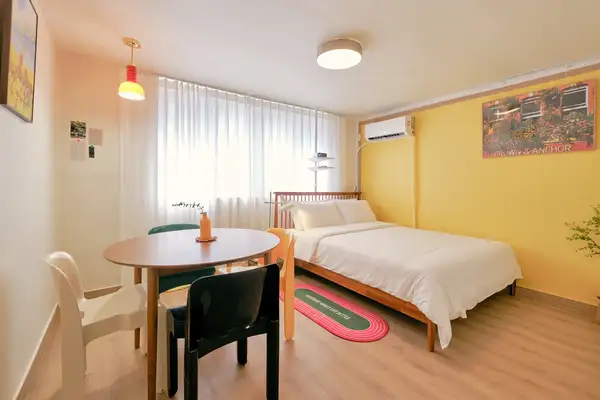 This is a cozy retro-sensitivity accommodation located near Shinjeong Intersection Station on Line 2. It is the best space to provide inspiration, comfort, and inspiration for exchange students and long-term guests. 🏠 Space introduction 2 rooms, 2 queen-sized beds (most comfortable for 2 people, up to 4 people) 1 private bathroom, 1 kitchen, washer & dryer Free Wi-Fi, Netflix movies, LP music available simple cooking kitchen facilities *Note: Bedding and amenities are provided for a fee in the form of short-term rentals 📍 Location & Accessibility 10-minute walk from Sinjeong Intersection Station on Subway Lines 2 and 5 It's easy to get to Hongdae, Yeouido, Sindorim, and Gimpo Airport Located in a quiet and safe residential area Within 5 minutes on foot of daily amenities such as Daiso, convenience store, hospital, market, etc ✨ Special Features official accommodation legally registered and approved an interior that exudes the sentiments of an artist Inspirational Mini Movie Theater & Music Space Reliability for long-term guests and convenience for short-term travelers 🍴 Good restaurants near the hotel Zenith Pizza Rail – Thick and Local Popular Pizza (5 minutes walk, discounted W5,000 for takeout) Charlie's Bread Factory - Homemade Bread Every Morning (1 minute walk) Native Korean Beef - Korean Beef & Pork Ribs Specialist (walk 3 minutes) 🌿 Things to see around the hotel Yangcheon Park – 15 minutes walk (wide lawns, trails, sports facilities) Mokdong Sports Complex – Bus 30 minutes (various sports events & large events) Yeongdeungpo Times Square – 4 subway stations (shopping malls, movie theaters, and various restaurants) At Stay Muse, you can enjoy both relaxation and concentration in a comfortable and inspirational space, and experience Seoul like a local.