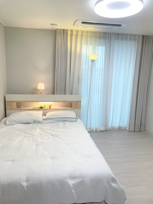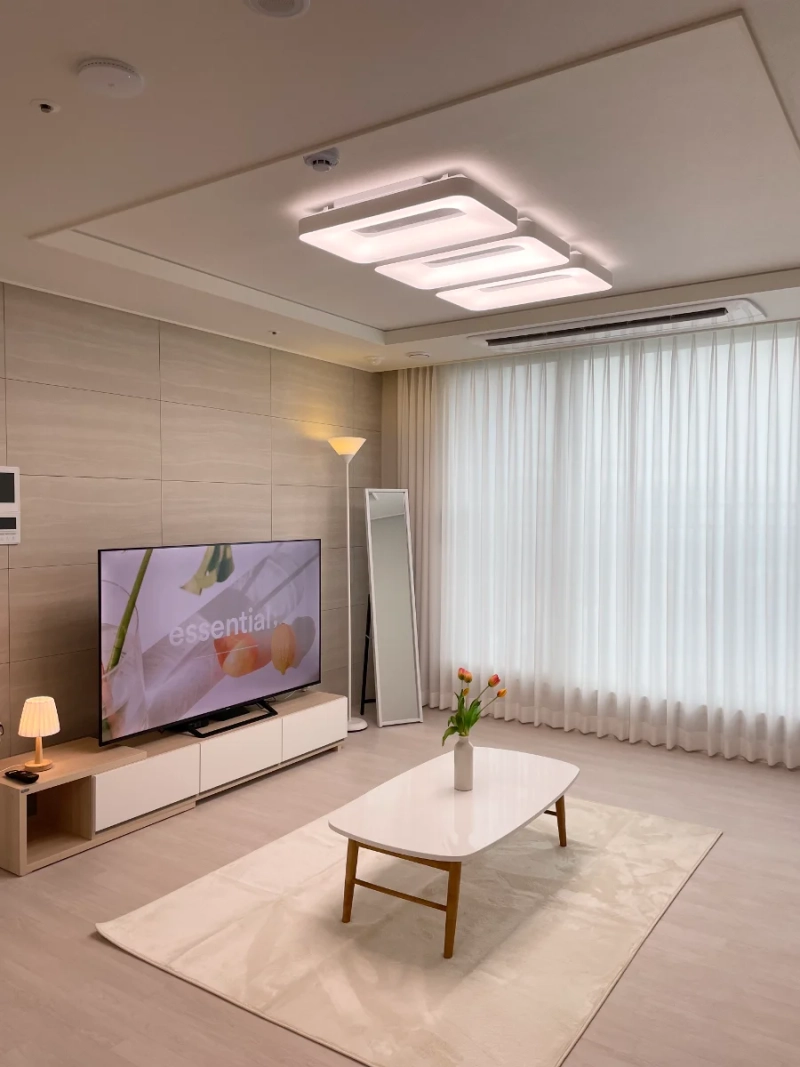 It is a new apartment (completed in August 2024) located 8 minutes walk from Deokgye Station in Yangju. Full Option / Queen Bed 2 / Sofa / Toilet / Washing Machine / Dryer / Dyson / Desk / Vacuum Cleaner (t50) / Notebook, etc Four air conditioners/Chinese doors/communities: fitness center, pilates center, table tennis court, etc Internet, Netflix (logged in), more than 100 channel smart TVs (55 inches) Personal desks and laptops for business/business use
