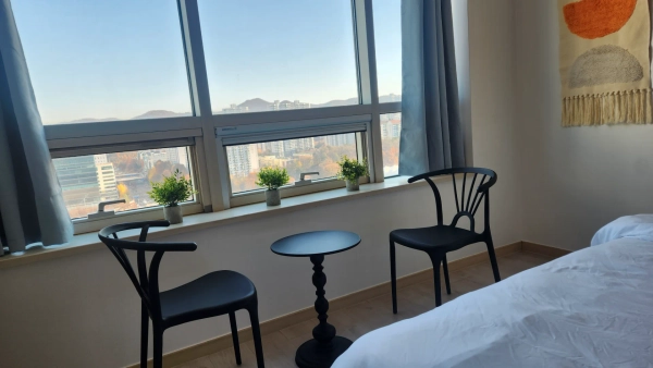 The floor will be heated 🙂 A room with a nice view of the scenery and sky! A place where you can heal with a cup of tea while looking at the beautiful scenery of the four seasons Sky full of view in the morning, night view in the open city in the evening 😍 Bundang Central Park, walk and exercise right in front of grass square - Sunae Station 3 mins walk - Jeongja, Pangyo for 10 minutes - Walking through Lotte Department Store and Sunae Station - many restaurants, cafes, and amenities Moving in will be conducted non-face-to-face. - When the contract is confirmed, we will send you a usage guide message. - Check-in is at 3 p.m. and check-out is at 11 a.m. - Smoking and pets are not allowed to enter. (250,000 won for special office consumption) - Transfer notification or business notification is not allowed. Subway: Sunae Station (3 minutes walk) and Seohyeon Station (10 minutes walk) Buses: Gangnam Station (1101), Seoul Station/Jongro/Gwanghwamun (8100), Airport Buses (5200 and 5100) Nearby: Bundang-gu Office, Lotte Department Store, Bundang Cha Hospital, Bundang Seoul National University Hospital, Korea Job World, Kyobo Bookstore, etc Welcome to the business trip, interior design, visit to Korea, move abroad, and stay in storage Outpatient treatment, recommendation of residence during hospital practice Based on two people