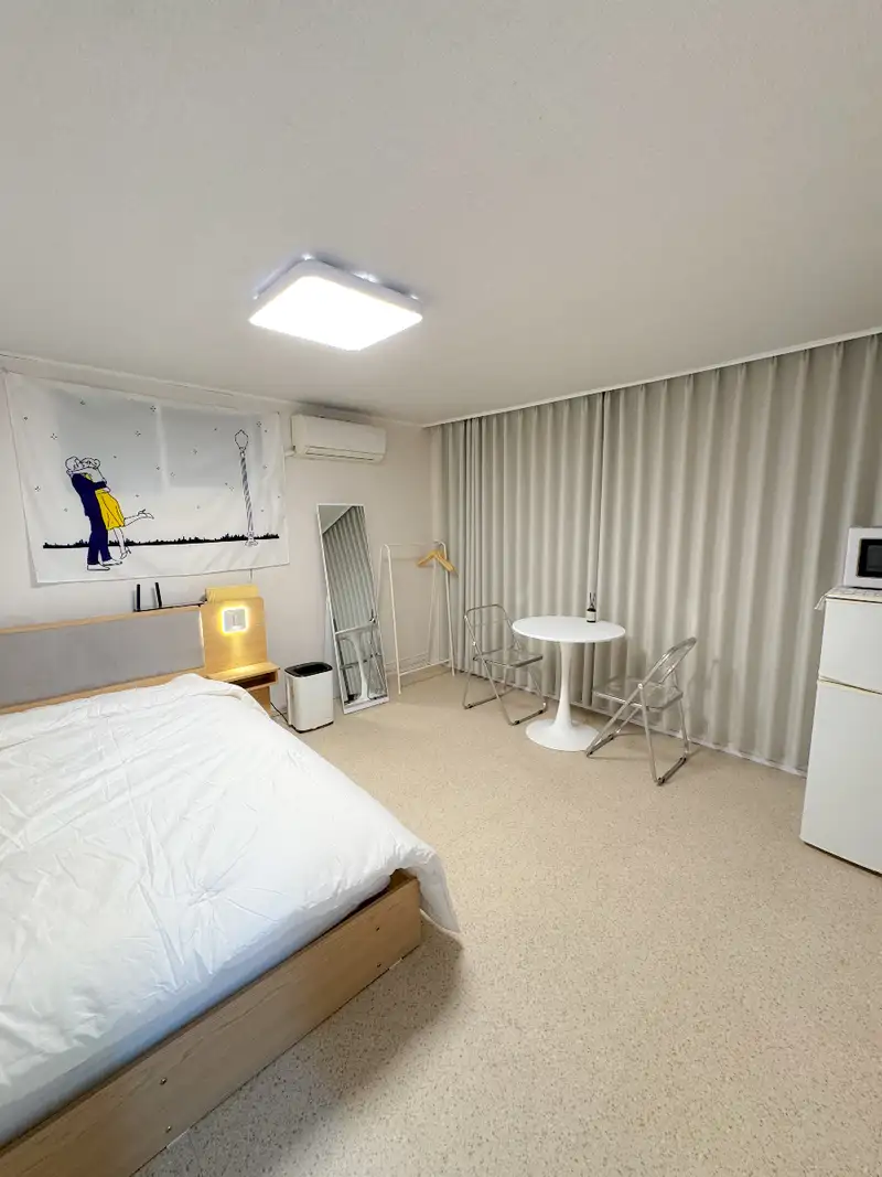 Hongik University Station on Subway Line 2 takes 2 minutes on foot and 1 minute at the convenience store Right next to the hot place in Yeonnam-dong It's a 1.5 room in a quiet residential area Plaster and floorboard recently remodeled and moved in for the first time ✨ 💡 Recently renewed. Prepare both furniture and appliances with new products 💡 Wide queen bed (up to 2 people) 💡 Located in a quiet residential area, cozy rooms and kitchen separation allow for comfortable rest 💡 Check-in: After 3 p.m., Check-out: Before 11 a.m 💡 Convenience store a minute's walk from nearby, All convenience facilities such as AK Plaza, Hyundai Department Store, and restaurant can be used within 10 minutes on foot ✔ Admission is 3 p.m. / 11 a.m (If you don't have a reservation next time, you can adjust it) ✔ Moving in will be conducted non-face-to-face. ✔ Once the contract is confirmed, we will send you a message on moving in and using it. ✔ No indoor smoking / No pets / No parties * convenient amenities - Internet + Wi-Fi - a queen-size bed - a washing machine - Air purifier + dehumidifier - a year-round comfortable heating/cooling system - Refrigerator, induction stove, microwave, coffee pot - a dining table, a chair - Hair dryer, rinse, vacuum cleaner, mop, lint roller - Kitchen utensils (dish, cup, spoon, bowl, pot, frying pan, scissors, ladle, spatula) 🚅 3-minute walk from Exit 3 of Hongdae Entrance Station (Line 2, Airport Railroad, Gyeongui Joongang Line) 🌳 1 minute walk on Gyeongui Line Forest Road 🚌 Bus stop 3 minutes on foot (easy to move to each center of Seoul) 🔕Hongdae Main Street, Yeonnam-dong, University Street, etc., but it is quiet because it is a residential area