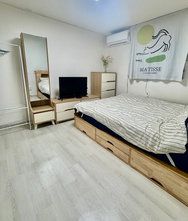 🌳 Seoul Forest, near Seongsu Cafe Street. Located on Seongsu Cafe Street, Seoul Forest is a walking distance. ✨ A full optional room with a queen bed 1, TV (Nexflix, YouTube, etc.), washing machine, microwave, and refrigerator. ✨ Convenient to have a queen-sized bed and work/meal table for a comfortable night's sleep ✨ There is a coin laundromat within 5 minutes of walking (Clintopia Coinwash Seoul Forest Hillstate Branch) ✨ It is pleasant to have a small room with sunlight. ▫️The move-in will be conducted non-face-to-face. Check-in: 3 p.m Check out: 10 a.m