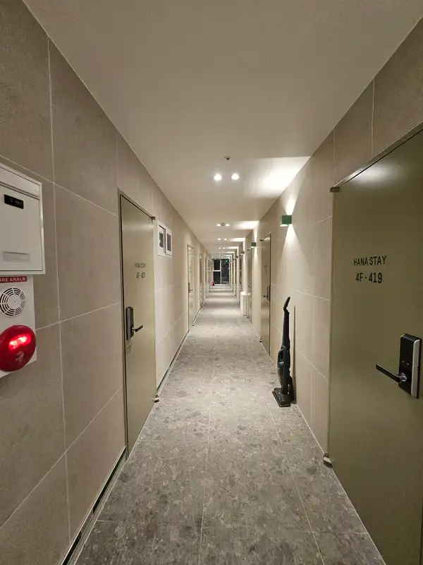 Hello, this is Hanastay Sinchon. We are a premium accommodation located just a 2-minute walk from Sinchon Station on the Gyeongui-Jungang Line, and also close to Sinchon Station on Line 2. Additionally, we are very near Severance Hospital, and both Yonsei University and Ewha Womans University are about a 10-minute walk away. Our property is situated on a main road near Sinchon Station (Gyeongui-Jungang Line), ensuring safety, and there is an elevator in the building for your convenience. You can reach Seoul Station, a major transportation hub, in just 6 minutes via the Gyeongui-Jungang Line. Each room is equipped with a private bathroom, bed, desk, refrigerator, washer-dryer combo, microwave, and high-speed wired and wireless internet. In the common area, we provide a dryer, rice cooker, ice water purifier, and espresso machine, all available for free use. You have to pay 300,000 won in deposit before entering.