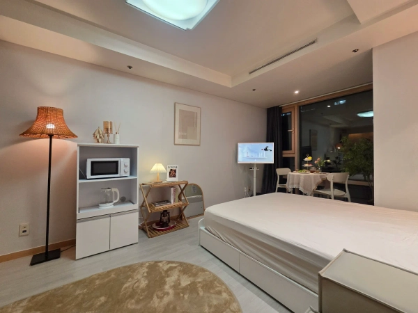★ Newly Opened Stay ★ Direct access to Mapo Station (20 seconds) Very close to the Han River (perfect for running & walking) · Han River view Clean, modern interior Professionally cleaned and well maintained Upon check-in, if you need any essential items, you may request them and we can send them via Coupang (within reasonable limits) Yeouido: 2 subway stops away (The Hyundai Seoul, Yeouido St. Mary’s Hospital nearby) Laundry room, cafés, and popular restaurants on B1, convenience store and bakery on 1F Bright during the day with plenty of natural sunlight (Blackout curtains are also provided if it’s too bright) Sogang University: 2 subway stops / approx. 11 minutes Accommodation Information & House Rules Standard occupancy: 2 guests (1 queen-size bed) → Please inquire in advance for stays with more than 2 guests Children are allowed, but additional bedding is not provided (Children must be accompanied by adults) Bedding and towels are not provided No disposable toiletries provided (Please bring your own toothbrush & toothpaste) This accommodation is offered as a monthly/short-term rental, not a hotel → Please prepare your own amenities Please follow all instructions and notices posted inside the accommodation *Strict Rules Absolutely no smoking If cigarette butts (including e-cigarettes), smoke smell, or evidence of smoking is found, a special cleaning fee of 200,000 KRW will be charged No pets allowed Address registration (resident registration) is not permitted No parties or gatherings allowed Quiet hours: 9:00 PM – 8:00 AM All utilities are included in the management fee → Excessive use of gas or electricity may be charged separately upon check-out Gas meter inspection occurs once a month — your cooperation is appreciated Trash & Recycling (Mandatory in Korea) Please separate and dispose of: PET bottles Glass bottles Styrofoam Cardboard boxes Paper General trash Food waste The white card hanging next to the bathroom door is the recycling room key The brown card is the main entrance key for the officetel building → If lost, a 50,000 KRW replacement fee will be charged Building & Location Highlights 4 elevators in operation — no waiting time Numerous shops, convenience stores, cafés, restaurants, and laundromat on 1F & B1 Trash, recycling, and food waste disposal area located together outside on 1F Excellent transportation access *Transportation Direct underground connection to Line 5 – Mapo Station Airport bus stop: 5-minute walk Yeouido Station (Line 5): 2 stops Fast access to Gangnam via Line 9 Easy access to Hongdae, Yongsan, and Seoul Station Gongdeok Station (AREX): 1 stop 24-hour security guard on duty *Check-in Notice Please enter through the officetel entrance, not the apartment entrance Take the elevator up from the officetel lobby to access the accommodation