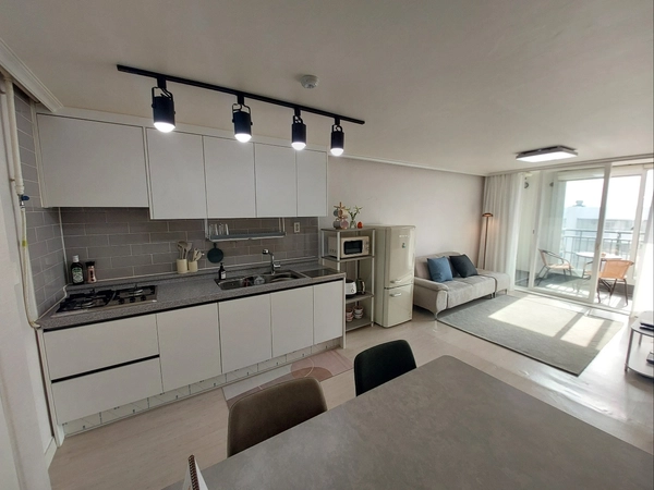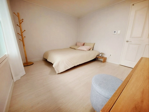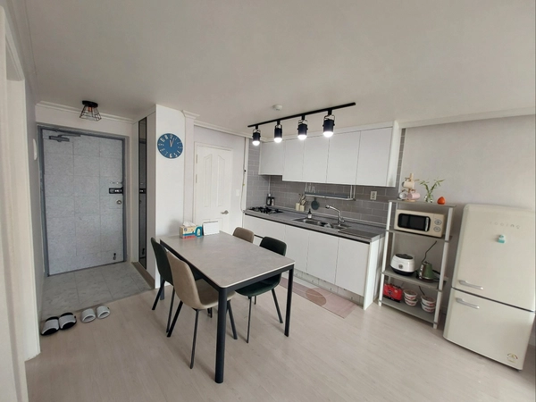 - It is a warm south-facing house with an open view and brilliant sunshine. - It is a 22-pyeong apartment with two rooms, a living room, a bathroom, a kitchen, and a veranda. - It is a new house decorated with remodeling, new home appliances, and furniture. - It is equipped with two queen beds, a dressing table, storage shelf, home appliances, kitchen supplies, a dryable tromm washer, 55-inch tv, and high-speed internet. -The wifi password is written on the router. - Moving in is done non-face-to-face. - The maximum number of people available is 4, which will result in additional charges if electricity or gas charges are excessive. - Smoking is prohibited indoors and on the veranda. If you smell cigarettes, you will be charged for damages. - Once the contract is confirmed, we will send you a message on moving in and using it. - Please stay quiet indoors after 22:00. - Companion is not allowed. - It is a top floor that is free from noise between floors and is quiet due to the construction of soundproof doors. - The view of the veranda overlooking the Gyeongbu Line train, Seonghwancheon Stream, and Seongsan Mountain is fantastic, and you can enjoy watching movies on a 55-inch TV. - There are 2000 apartment complexes around the complex, so convenience stores and living facilities are well established, and an apartment market opens every Wednesday in the complex. - Across the street, there is a sports center in the northern part of Cheonan City, so you can use the swimming pool and fitness center on foot. - The 100-year-old Seonghwan Ewha Market will be held on the 1st and 6th. I recommend you to enjoy the taste of Seonghwan Sundae in Seonghwan, the background of "My Liberation Diary." - Those who are on a business trip to a nearby industrial complex, those who need a temporary space for moving preparation and remodeling, those who are traveling, Namseoul University students, and faculty are all welcome. - It is convenient for transportation as it is adjacent to National Route 1, and you can use Seonghwan Station and Jiksan Station on Subway Line 1. It's a 25-minute drive to Cheonan Asan Station. - There is a bus stop in front of the complex, so you can move conveniently. --It takes about 15 minutes on foot to Namseoul University.
